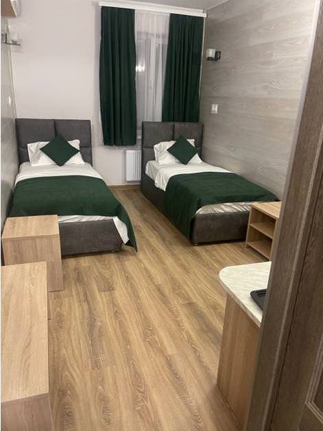Поездом до станции ж/д вокзала ст. Щёлково, далее на автобусе №50 двигаться до остановки «Платформа Чкаловский», далее 246 м до гостиницы.