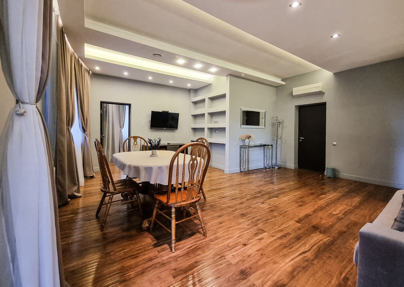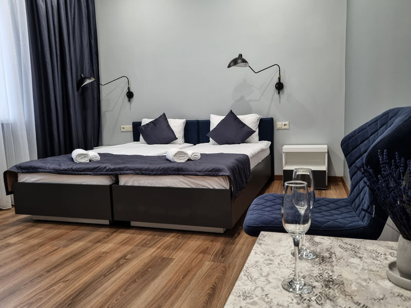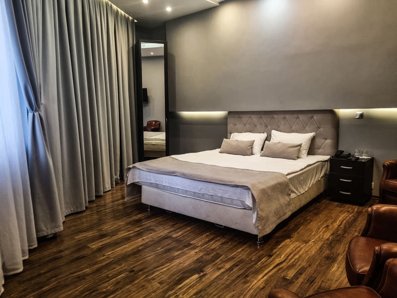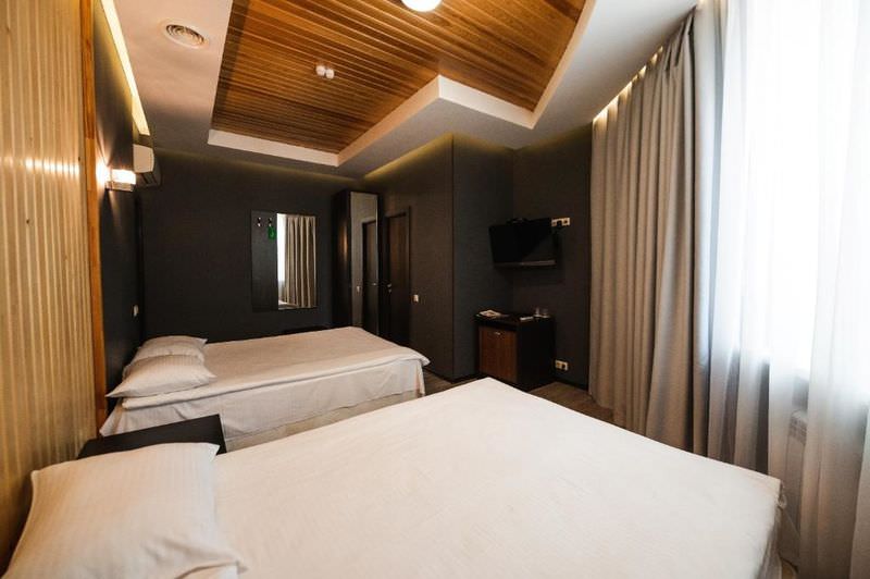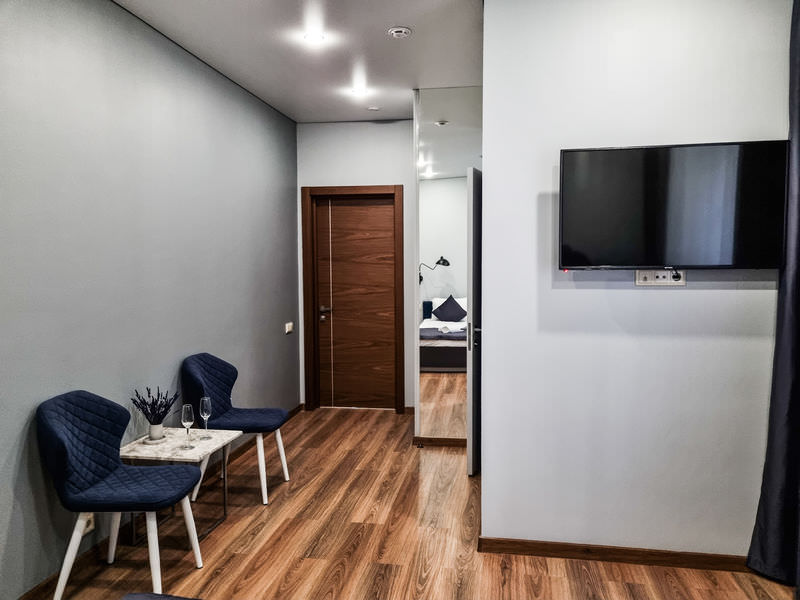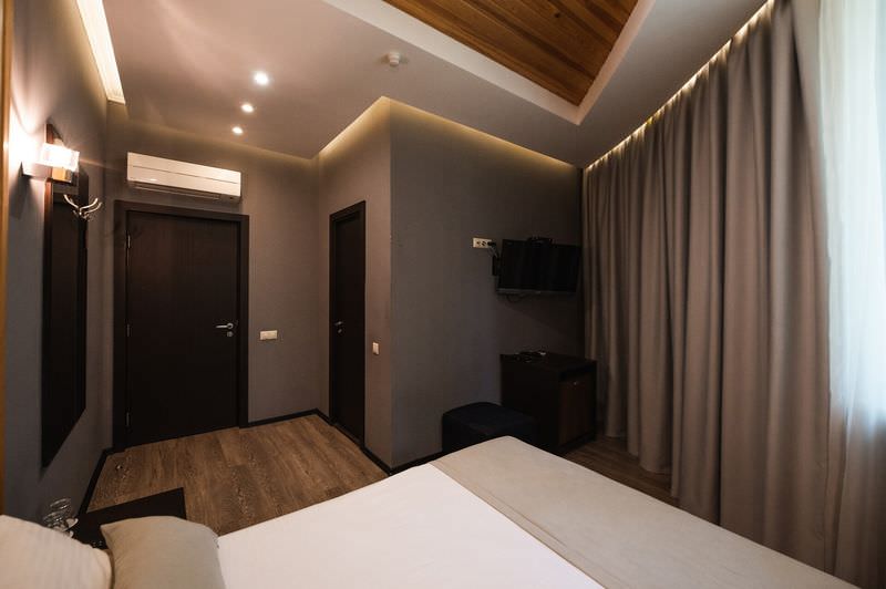 В номере: Кондиционер, Холодильник, Телевизор, Кабельное/спутниковое/цифровое телевидение, Тапочки, Фен, Набор для приготовления чая/кофе, Ванна, Двуспальная кровать, Тумбочка, Шкаф, Утюг; Макс. кол-во гостей - 2