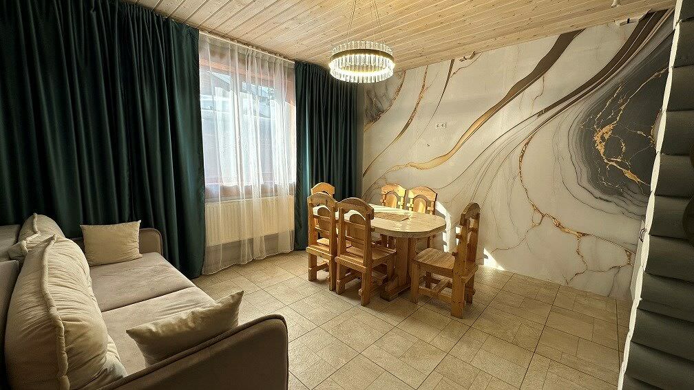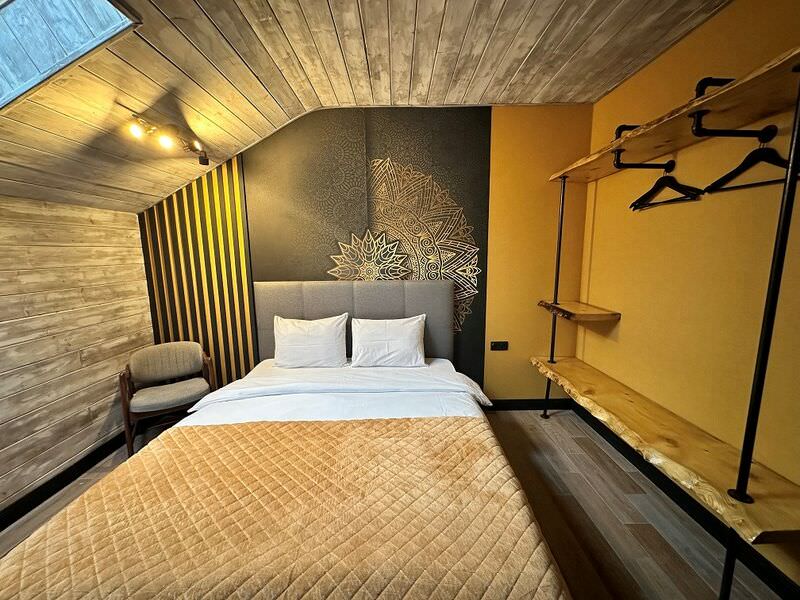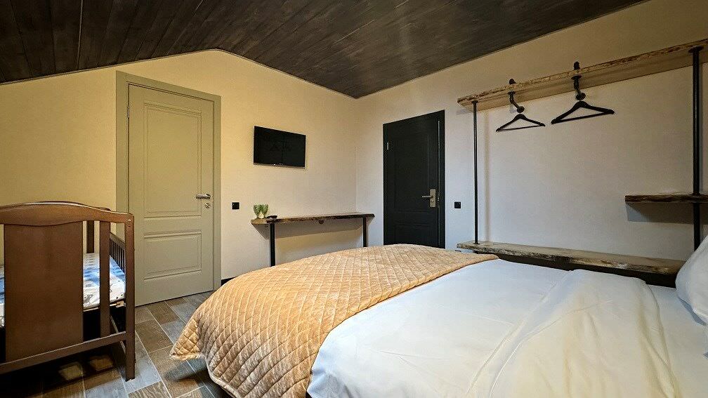 Площадь номера - 140 кв.м.; В номере: Холодильник, Телевизор, Телефон, Кабельное/спутниковое/цифровое телевидение, Тапочки, Кухня, Фен, Набор для приготовления чая/кофе, Мягкая мебель, Душ/душевая кабинка, Двуспальная кровать, Туалет в номере, Чайник, Набор посуды, Микроволновая печь, Сауна, Диван, Кресло; Макс. кол-во гостей - 4