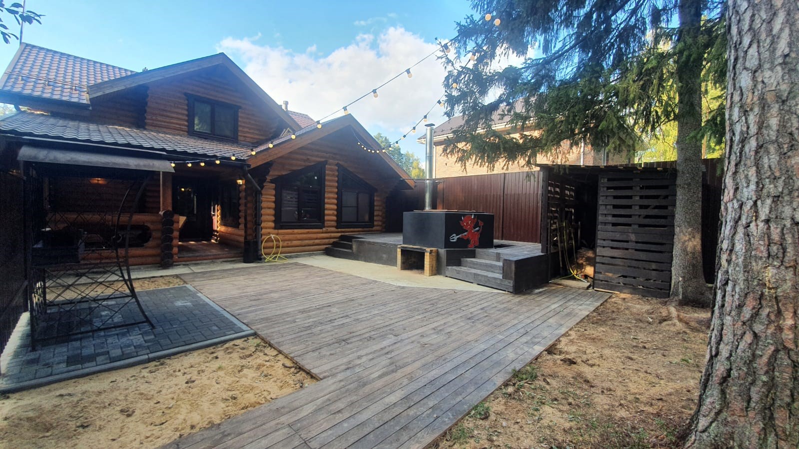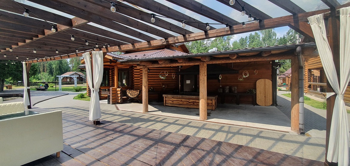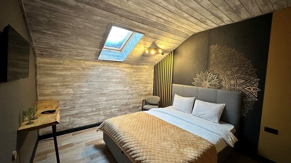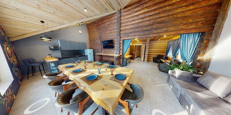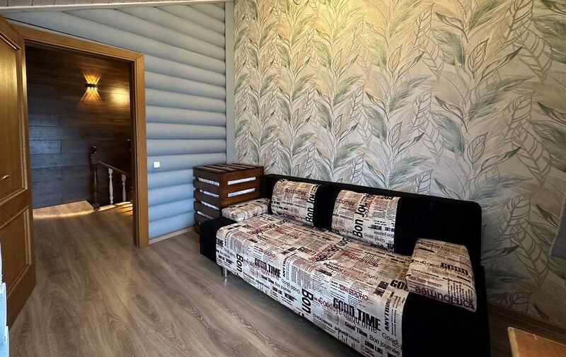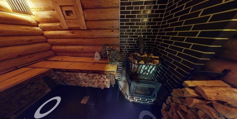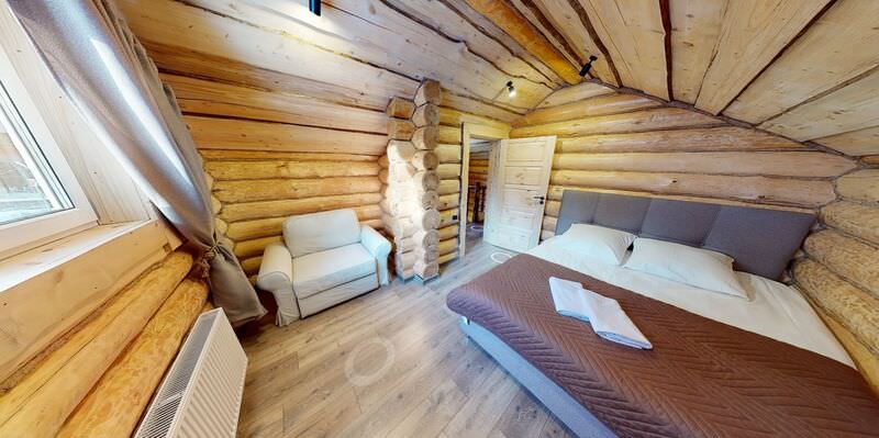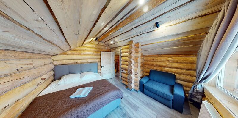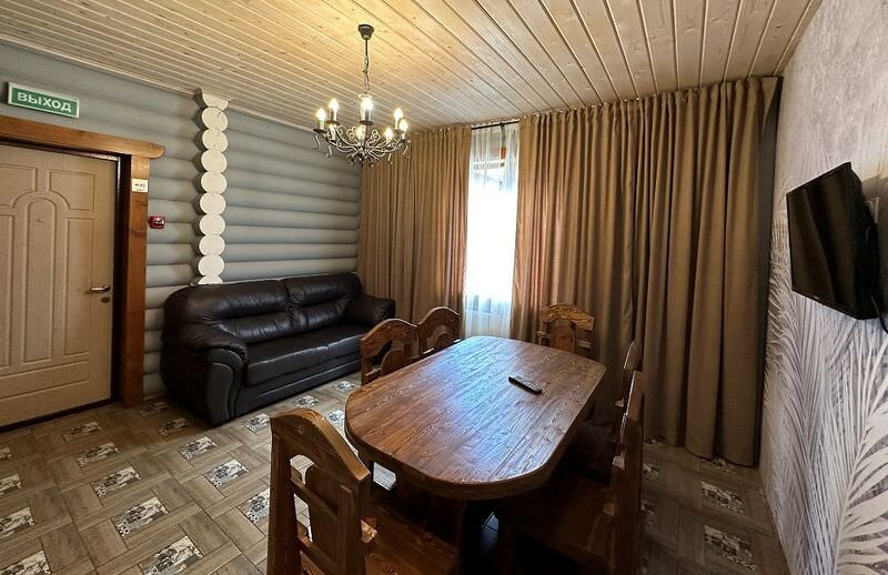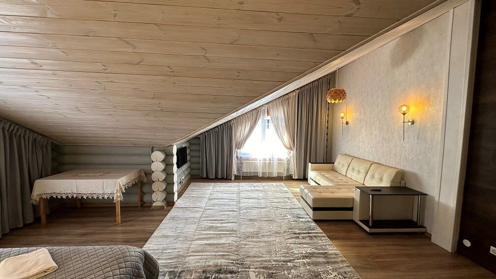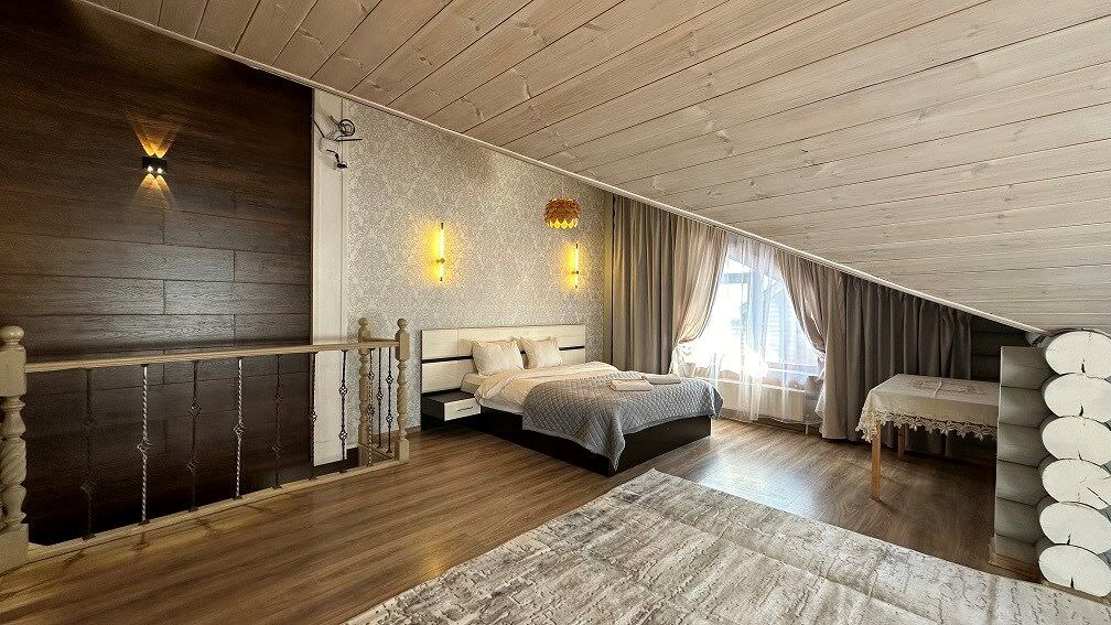 Площадь номера - 100 кв.м.; В номере: Холодильник, Телевизор, Телефон, Тапочки, Кухня, Фен, Набор для приготовления чая/кофе, Мягкая мебель, Душ/душевая кабинка, Двуспальная кровать, Туалет в номере, Чайник, Набор посуды, Микроволновая печь, Сауна, Терраса, Диван, Кресло; Макс. кол-во гостей - 6