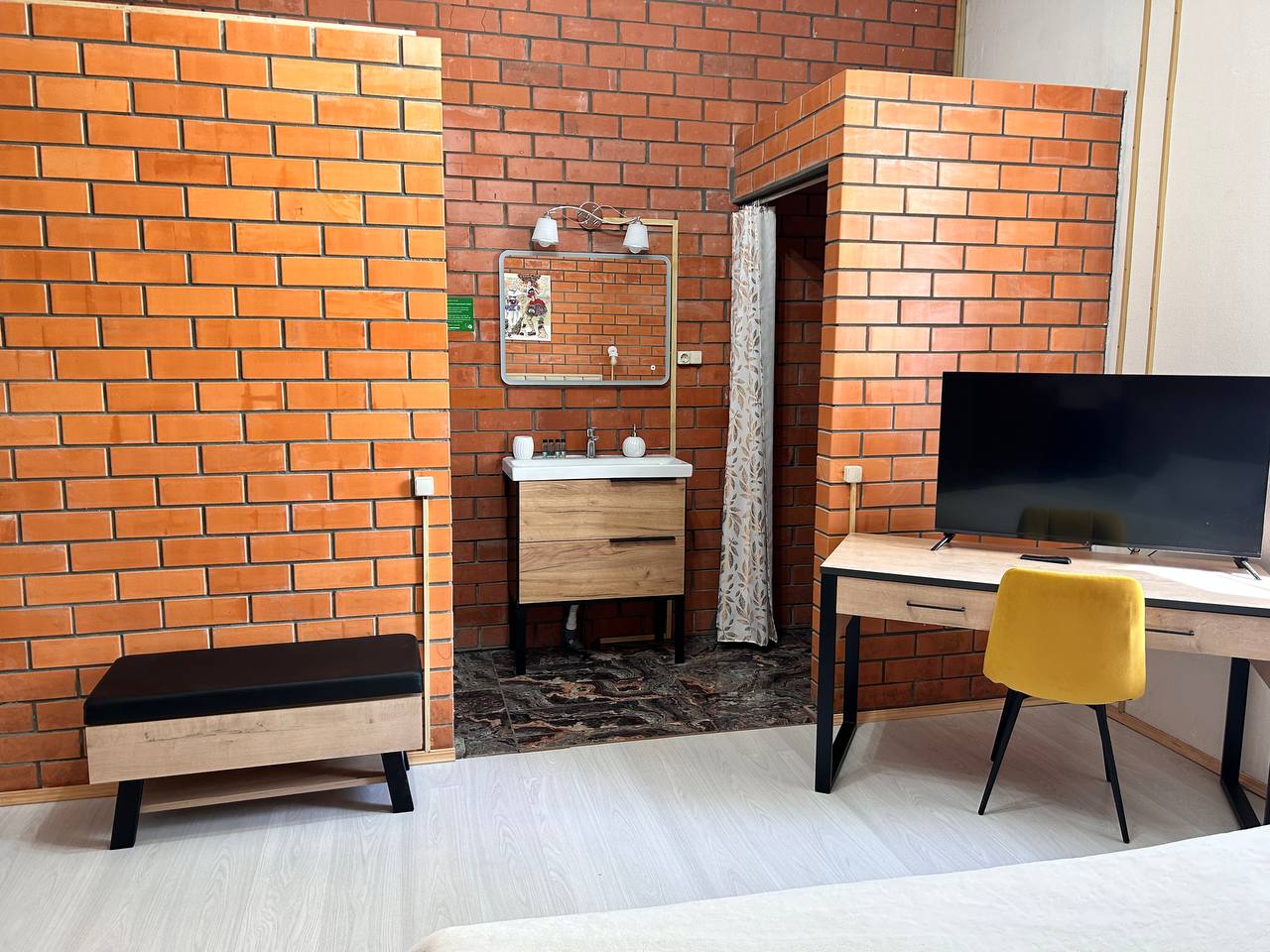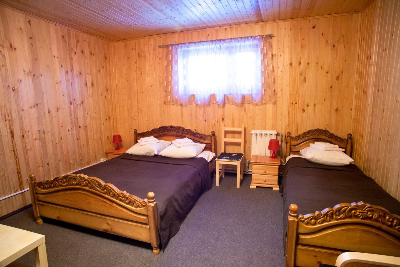 В номере: двуспальная и полутороспальная кровать, ТВ, холодильник, душ, туалет. Возможно размещение до 3-х человек на основных местах + 1 дополнительное место.