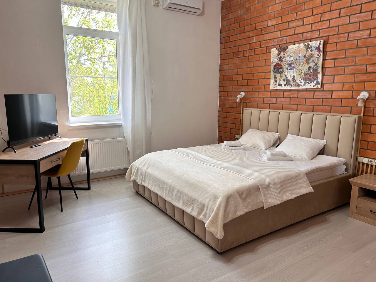 Площадь номера - 18-23 кв.м. 2 осн. места. 1 доп. место. Балкон. Мебель: кровать двуспальная, стол, стул. Оборудование: кондиционер, телевизор, холодильник. Санузел: с душем, туалетные принадлежности, фен. Сервис: смена полотенец, смена постельного белья, уборка номера.