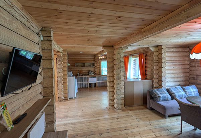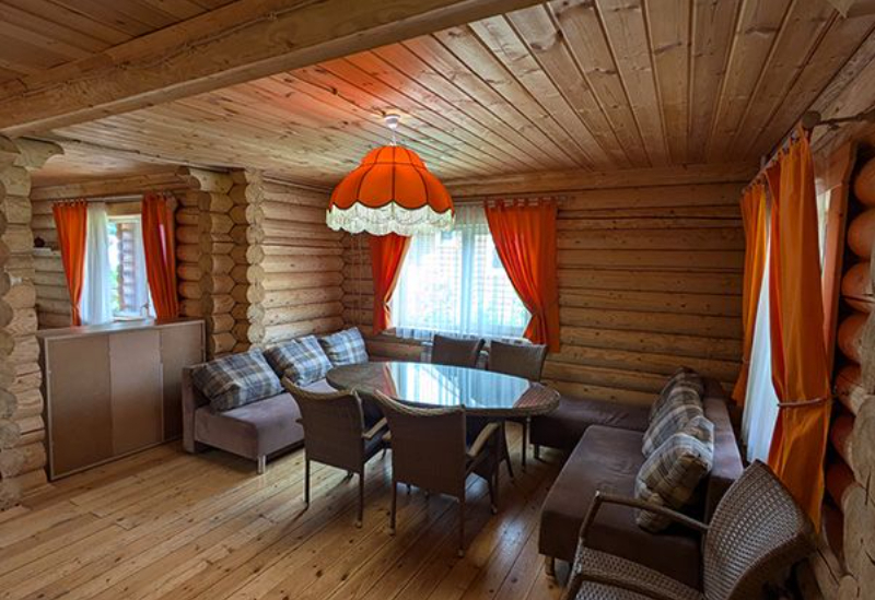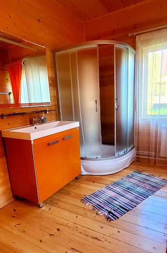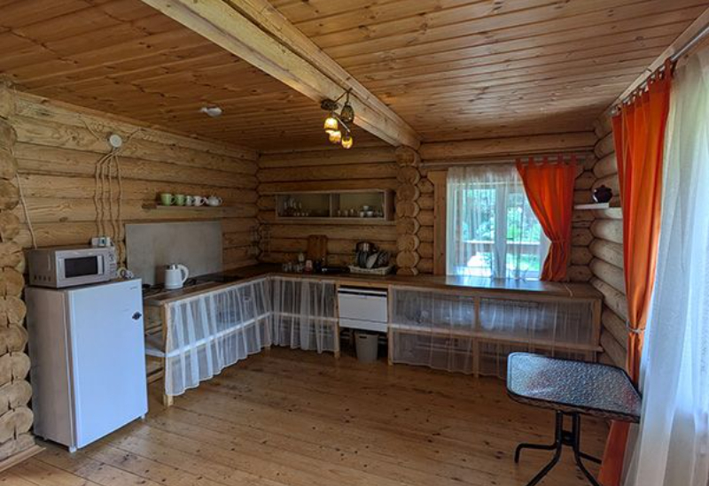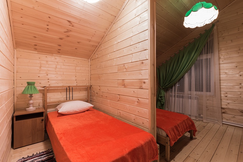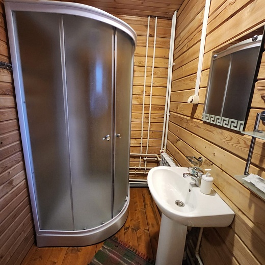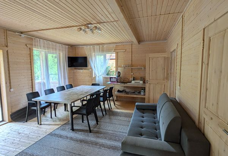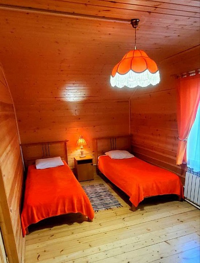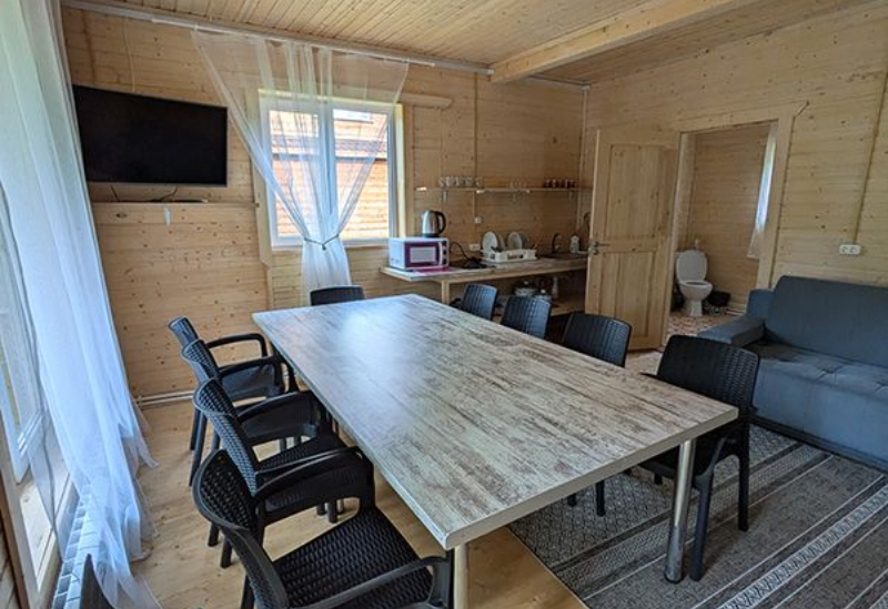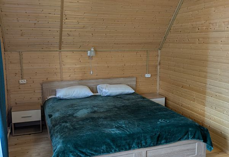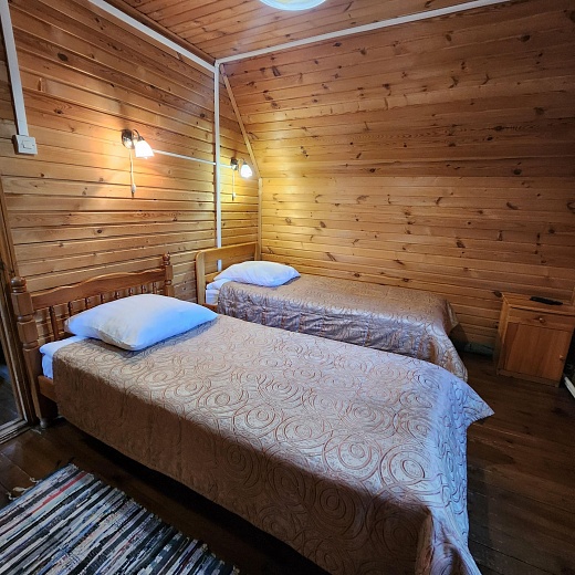 Площадь номера - 70 кв.м. 1 комната. 2 осн. места. в коттедже: спальня, гостиная с кухонным уголком, 2 санузла, мангал. В номере: телевизор; холодильник; балкон; туалет; микроволновая печь; 2-спальная кровать; чайник; душевая кабина; кухонный уголок. 2 доп. места: Диван - при размещении 4 человек третий и четвертый туристы размещаются на 2-спальном диване.