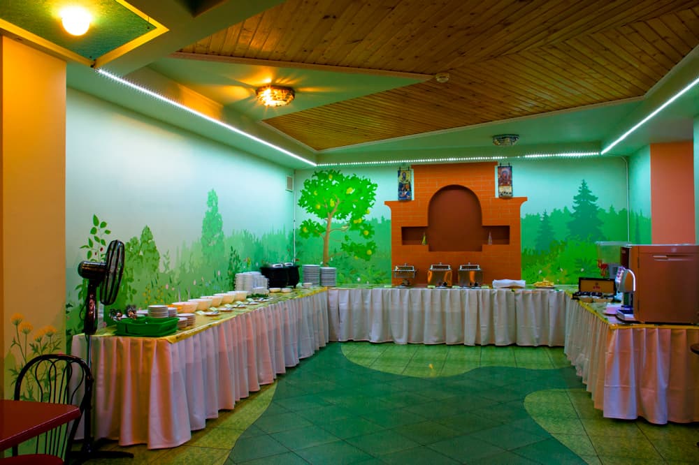Ресторан имеет открытое летнее кафе и зону для шашлыков. Он рассчитан на восемьдесят мест. В ресторане «Чайхана» гостям предлагаются блюда азиатской кухни. В меню большой ассортимент шашлыков, национальные супы и вкусный плов. Ресторан рассчитан на тридцать пять персон.