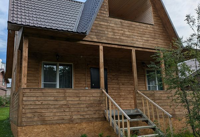 Площадь номера - 50 кв.м. 4 осн. места. 2 доп. места. Мангальная зона / беседка. Мебель: диван раскладной, кровати односпальные, кровать двуспальная, стол, стулья. Оборудование: микроволновая печь, телевизор, холодильник, электрочайник. Санузел: с душем, туалетные принадлежности. Терраса.