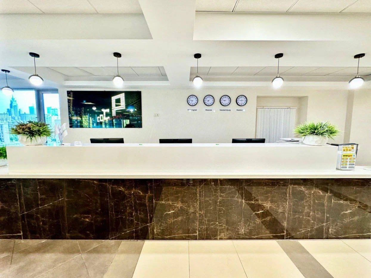 На территории имеются зал-холл на пятьдесят человек, который находится на третьем этаже корпуса; зал-холл на втором этаже корпуса; переговорные комнаты. Залы оборудованы всей необходимой аппаратурой. Здесь установлена мультимедийная система, ЖК-телевизоры, флипчарты и выдаются канцелярские принадлежности. Гости могут взять в прокат ноутбук.