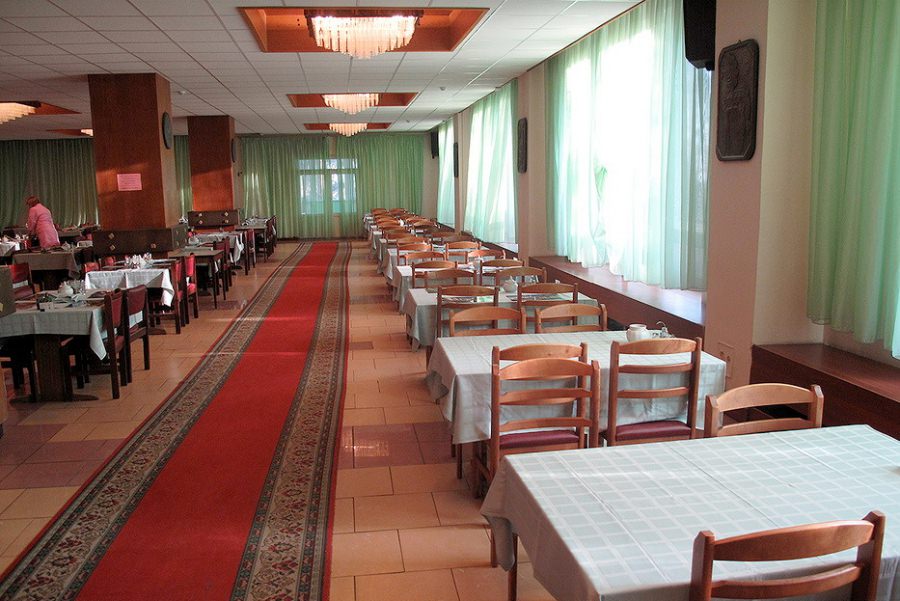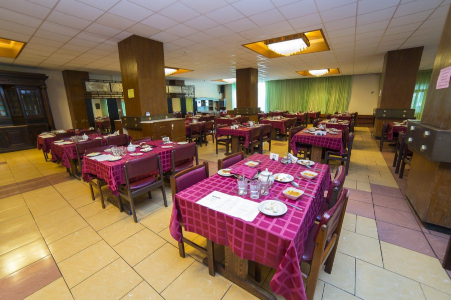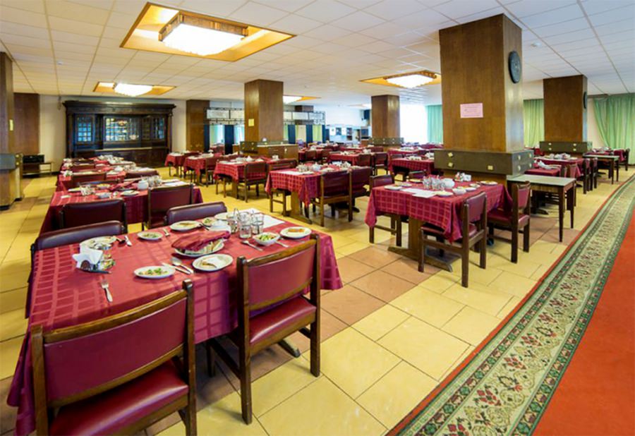 Для питания отдыхающих в санатории «им. Горького» предусмотрена замечательная столовая, в которой даже есть VIP-зал.