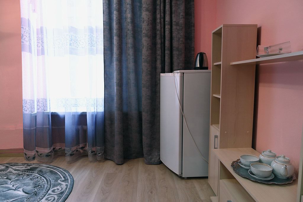 В номерах есть вся необходимая мебель и набор бытовой техники для удобства, а санузел оборудован душевой кабиной.