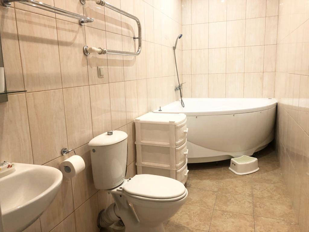 Помещение таких номеров оборудовано хорошей мебелью и бытовой техникой, а ванная комната оборудована ванной.