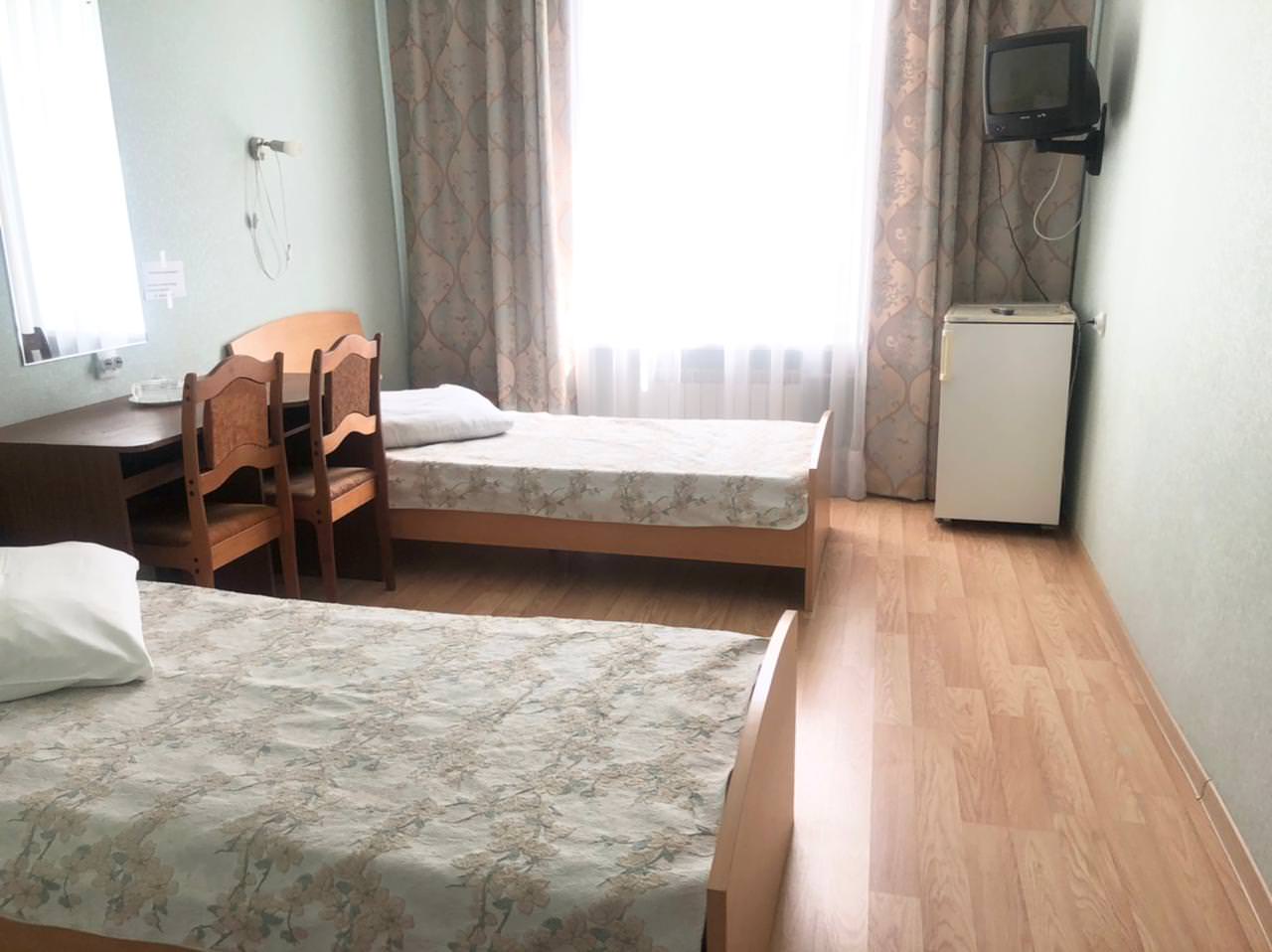 В номере находятся две раздельные односпальные кровати, шкаф для одежды, тумба прикроватная, стулья, холодильник, телевизор, санузел с душевой кабиной.