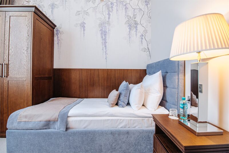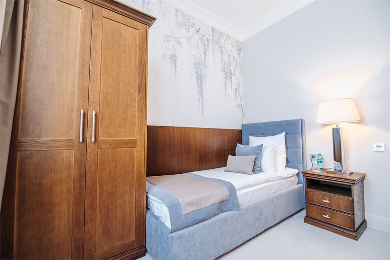 Площадь номера - 18 кв.м.; В номере: Холодильник, Телевизор, Телефон, Кабельное/спутниковое/цифровое телевидение, Халат, Фен, Набор косметики (туалетные принадлежности), Набор для приготовления чая/кофе, Душ/душевая кабинка, Туалет в номере, Полутороспальная кровать, Кофейная станция, Утюг; Макс. кол-во гостей - 1
