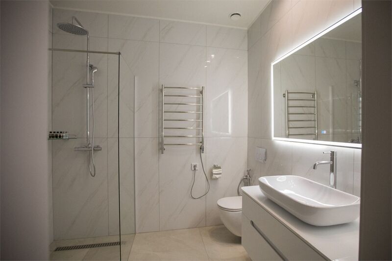 Площадь номера - 85 кв.м.; В номере: Кондиционер, Холодильник, Телевизор, Телефон, Кабельное/спутниковое/цифровое телевидение, Кухня, Халат, Посудомоечная машина, Фен, Набор косметики (туалетные принадлежности), Набор для приготовления чая/кофе, Мягкая мебель, Ванна, Душ/душевая кабинка, Двуспальная кровать, Туалет в номере, Тумбочка, Шкаф, Чайник, Кофейная станция, Микроволновая печь, Терраса, Диван, Кресло; Макс. кол-во гостей - 3