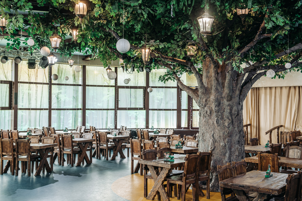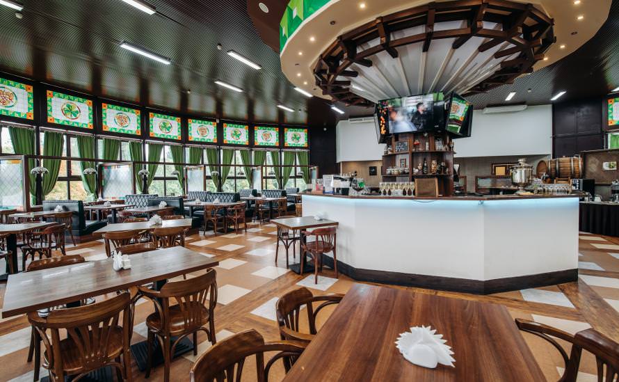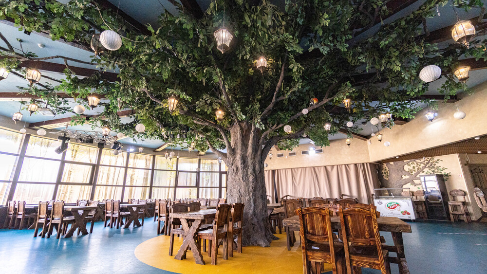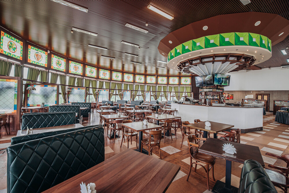 Для мероприятий могут использоваться залы ресторана «Shamrock», бара «Lesnoy», беседки для барбекю, а также зал «Большой трансформер».
