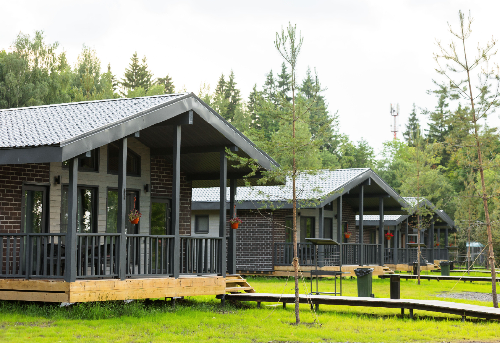 Каждый коттедж имеет свою террасу с видом на лесной массив, также есть свои мангальные зоны. Коттеджи оснащены умными Яндекс колонками с Алисой.