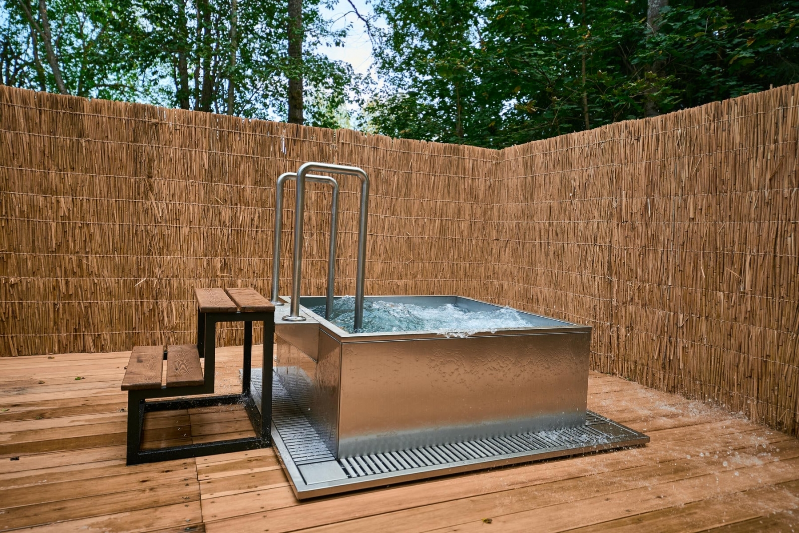 Вместимость парной – до 8 гостей, купели – до 2 гостей.