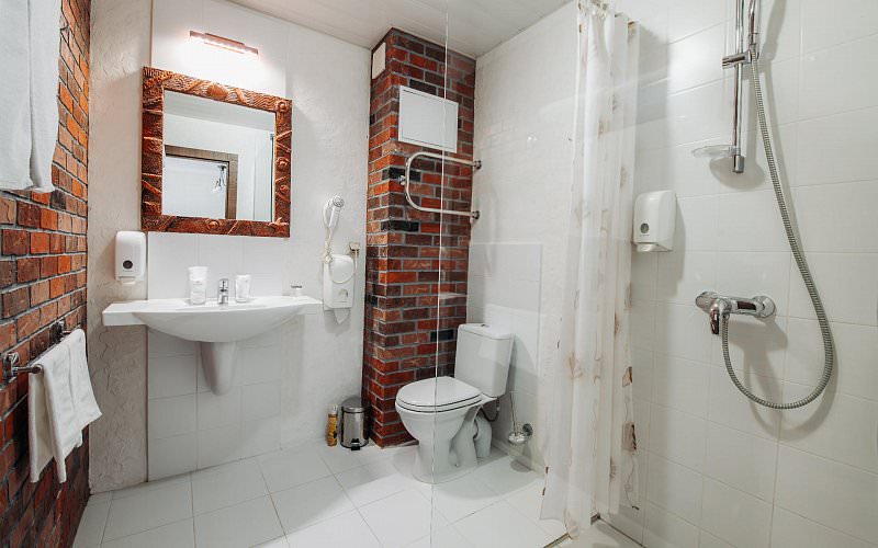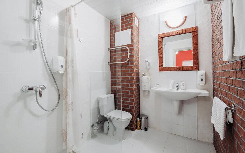 Санузел: ванная комната, фен,халаты, гигиенические средства, унитаз, банные принадлежности.