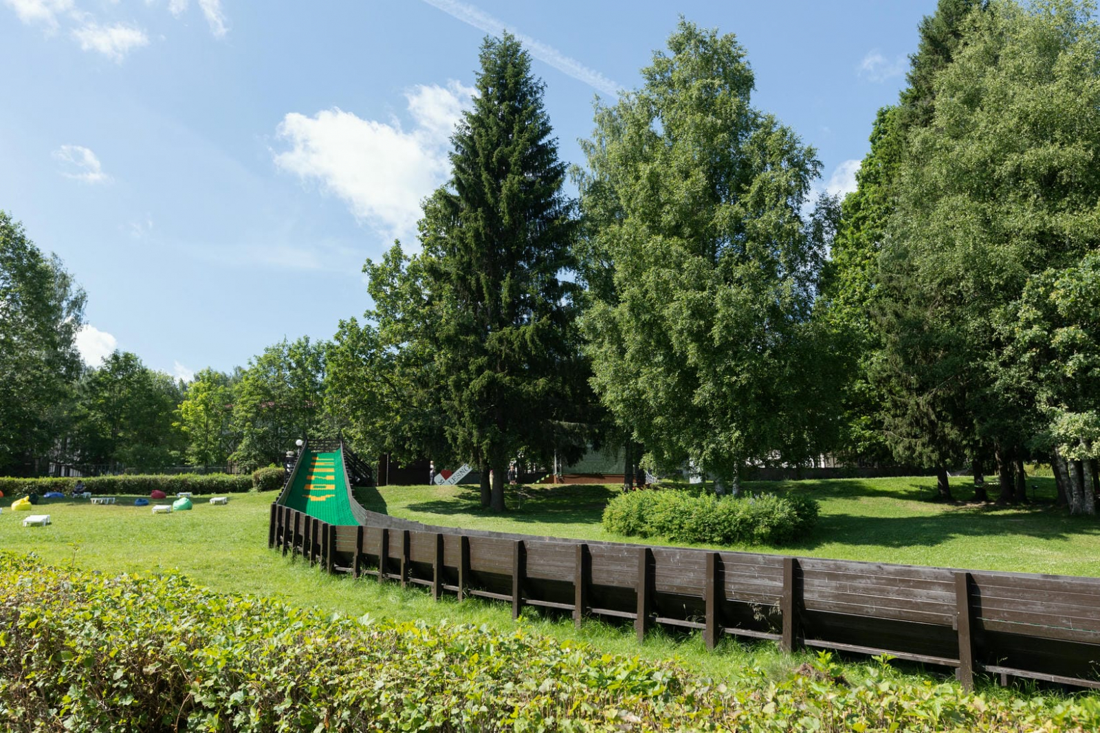 В парк-отеле находится замечательная детская площадка, созданная с учетом безопасности и потребностей детей разных возрастов. Она включает разнообразные игровые элементы, такие как горки, качели и лазалки, которые не только развлекают малышей, но и способствуют их физическому развитию.