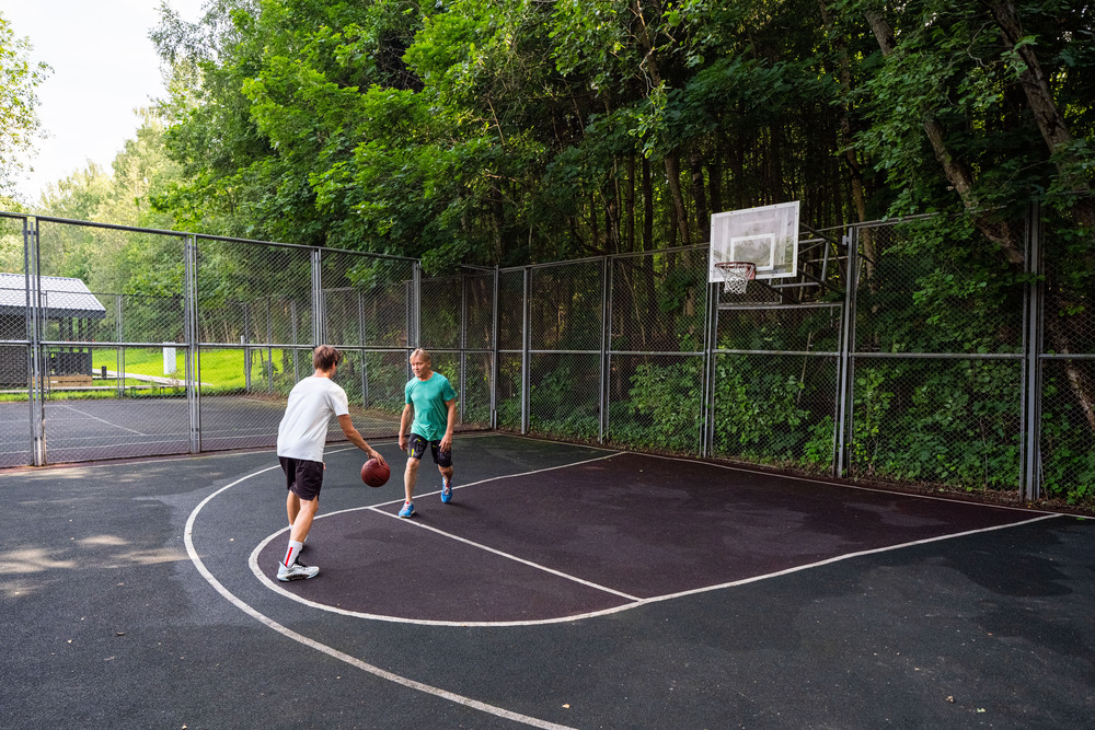 Также имеется спортивная площадка для спортивных игр на свежем воздухе.