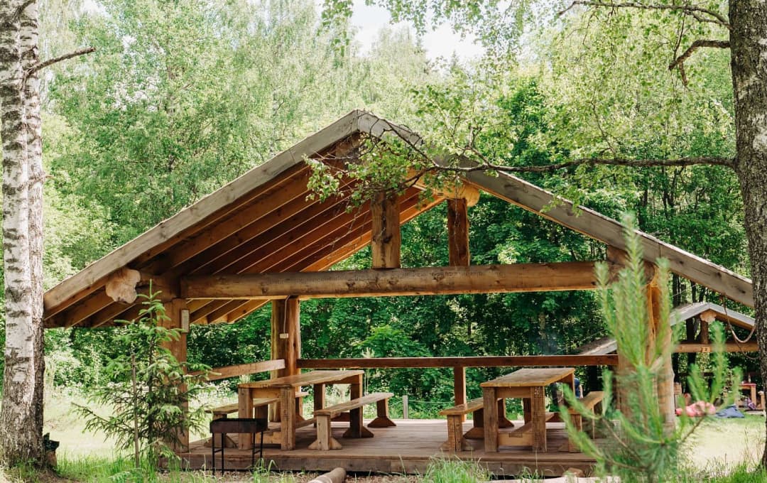 На территории парк-отеля гости могут арендовать уютные беседки для барбекю или гриль-домик. В стоимость беседок включено: мангал, комплект шампуров, жидкость для розжига, уголь. Беседки имеют различную вместимость, а гриль-домик вмещает до 10 человек.