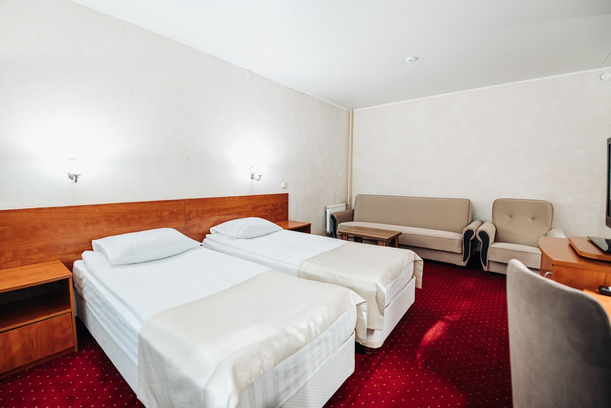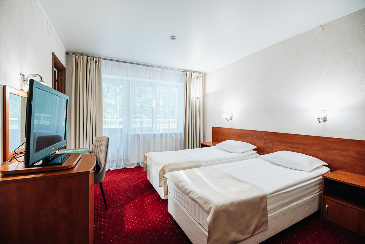 Стандартный однокомнатный номер для размещения двух человек. Площадь номера 19 кв.м. В номере 2 односпальные кровати. В номере есть балкон. Дети до 5 лет проживают бесплатно без предоставления дополнительных мест.