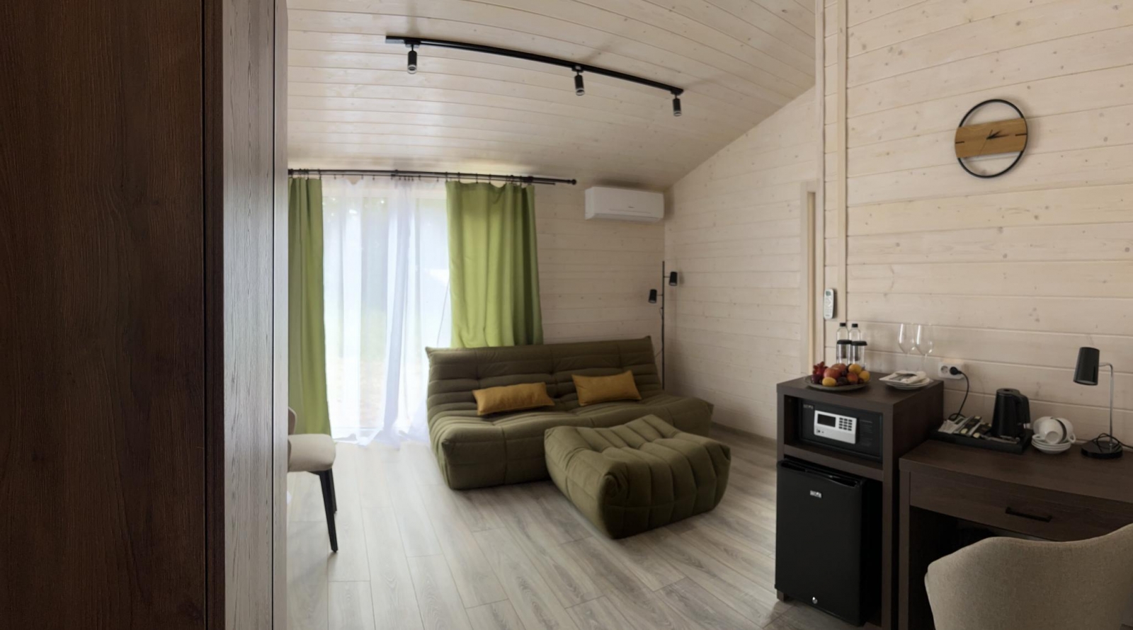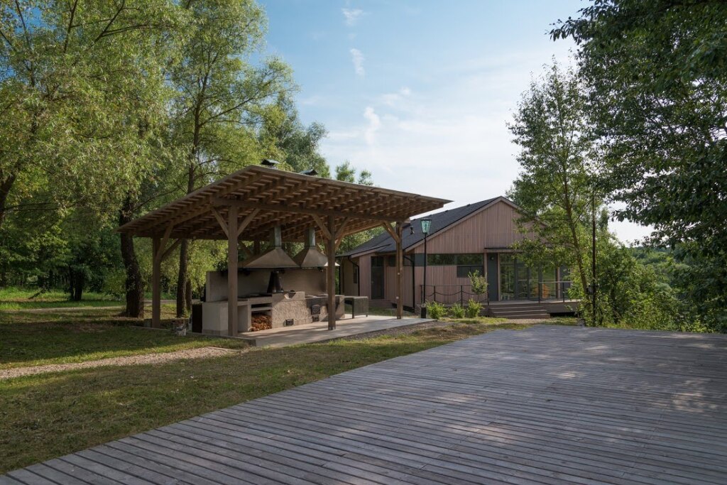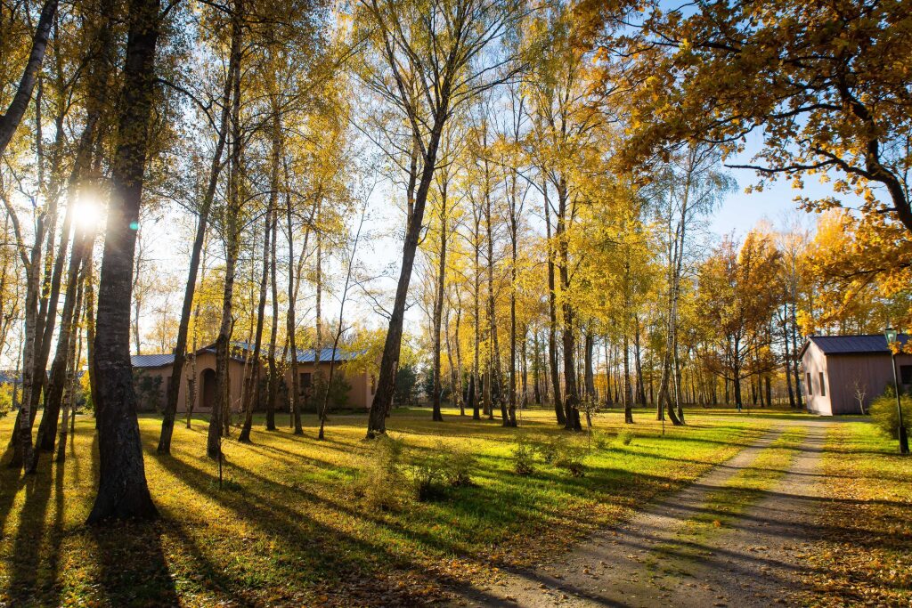 Резиденция Chekhov APi разместилась в городском округе Чехова на юге Московской области. Рядом проходит федеральная автодорога «Крым», в получасе езды – центральная кольцевая автомобильная дорога. До МКАД – 58 километров, а до ближайшего аэропорта – Домодедово – 67 километров или около часа пути. Комплекс занимает обширную территорию площадью 200 гектаров, расположенную в окружении живописного среднерусской природы. Пространство гостиничного комплекса отлично подойдет как для неспешного отдыха на природе, так и для проведения деловых мероприятий, конференций или корпоративов. А архитектурные объекты комплекса, выстроенные по проектам современными дизайнерами и архитекторам, хорошо вписываются в природный ландшафт. Резиденция включает в себя современный отель с 27 номерами, две виллы, а также зону глэмпинга с комфортабельными палатками и двумя модульными домами. Во всех номерах стильный светлый интерьер, везде, в том числе и в глэмпинге, есть собственный санузел с душем, беспроводной интернет. В гостиничных номерах есть плазменный телевизор и утюг. На территории комплекса открыт ресторан, в отдельно стоящем здании работает спа-центр с массажем, обертываниями и классическая русская баня. Также среди услуг – настольный теннис, прокат велосипедов, а зимой – коньков и лыж. По предварительному запросу для юных гостей устраиваются анимационные мероприятия, есть детские стульчики и кроватки-манежи для малышей.