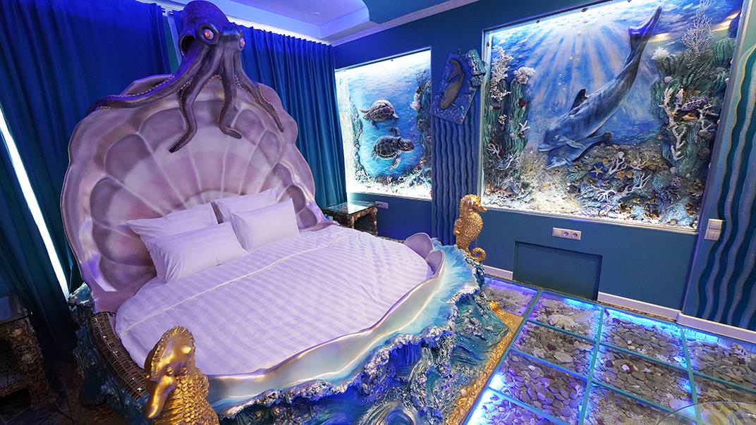 Удивительный мир морской тематики, настоящее погружение в пучину. Двуспальная кровать, удобства.