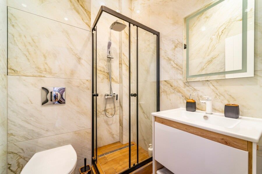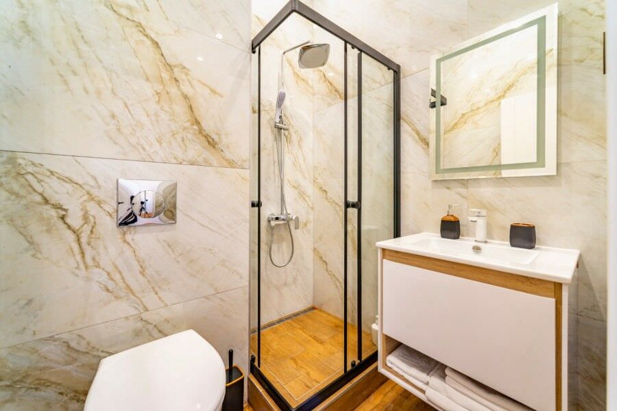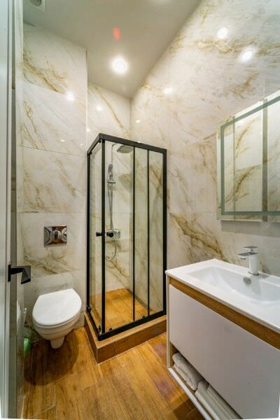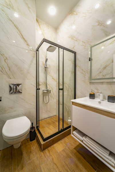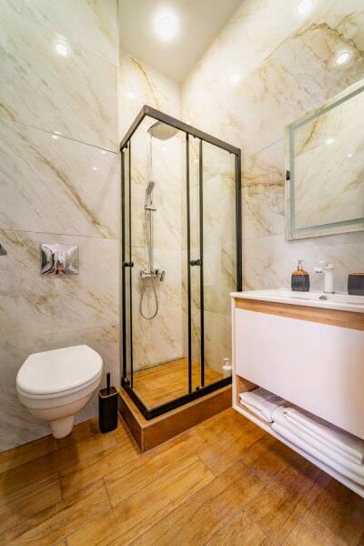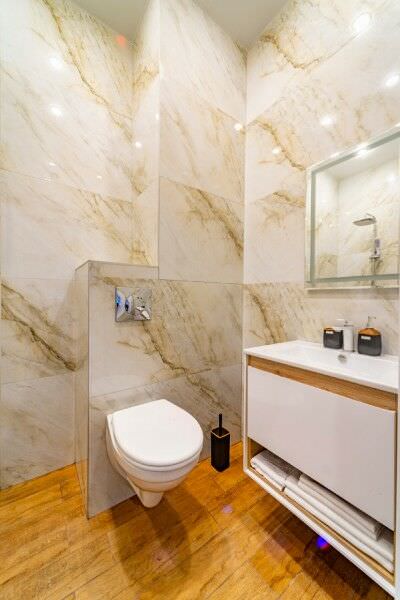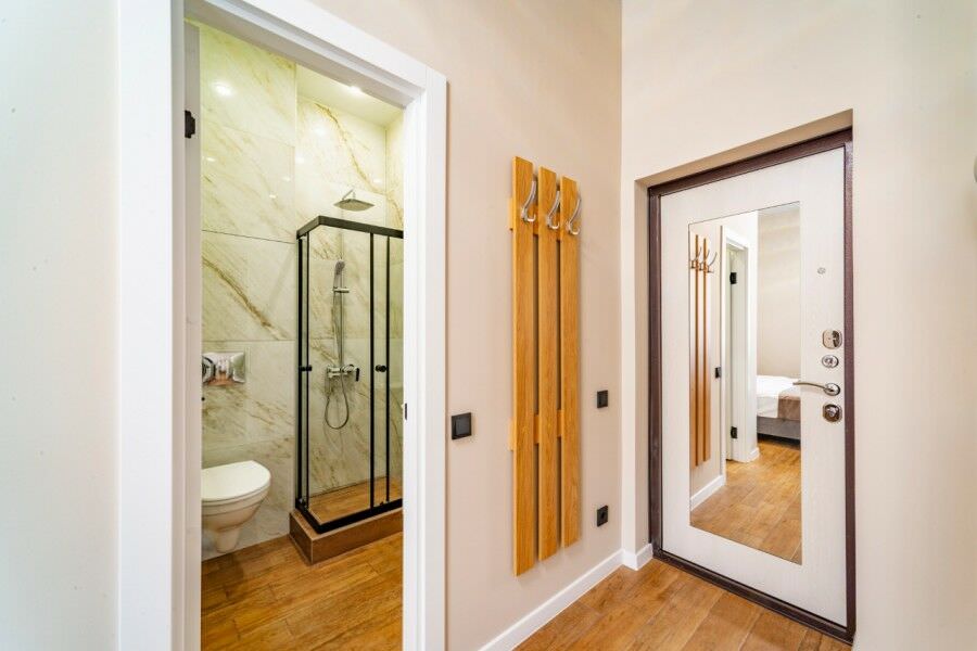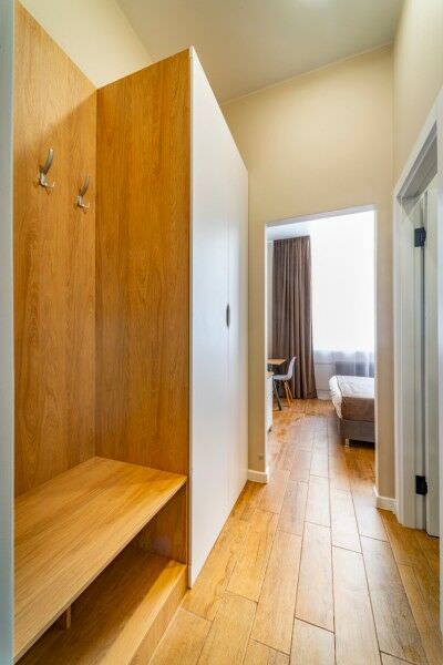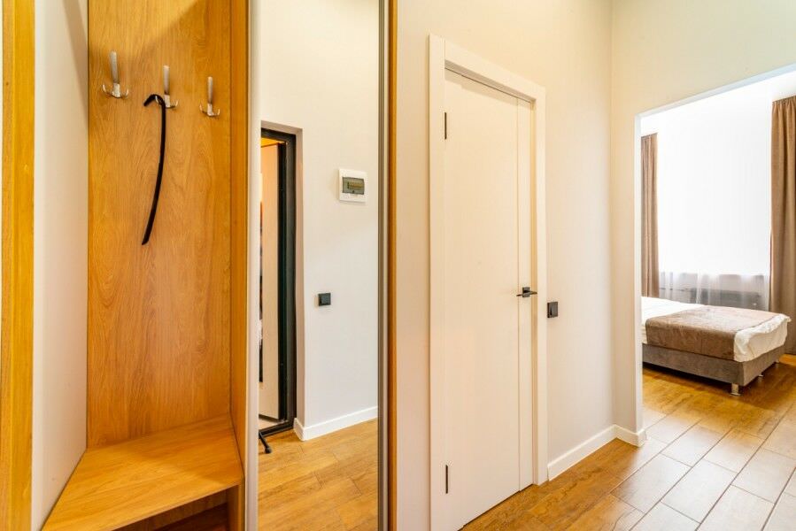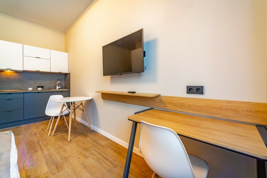 Площадь номера - 32 кв.м.; В номере: Кондиционер, Холодильник, Телевизор, Стиральная машина, Кабельное/спутниковое/цифровое телевидение, Тапочки, Кухня, Фен, Набор косметики (туалетные принадлежности), Набор для приготовления чая/кофе, Рабочая зона, Душ/душевая кабинка, Двуспальная кровать, Туалет в номере, Чайник, Утюг, Микроволновая печь; Макс. кол-во гостей - 2