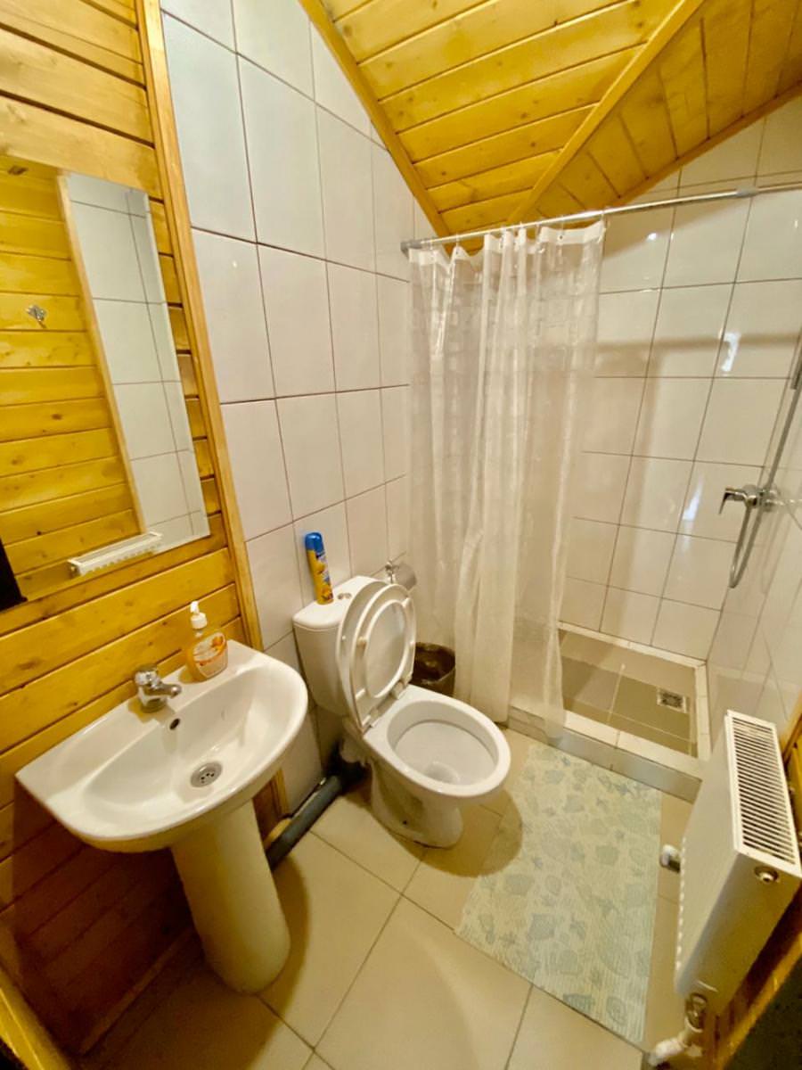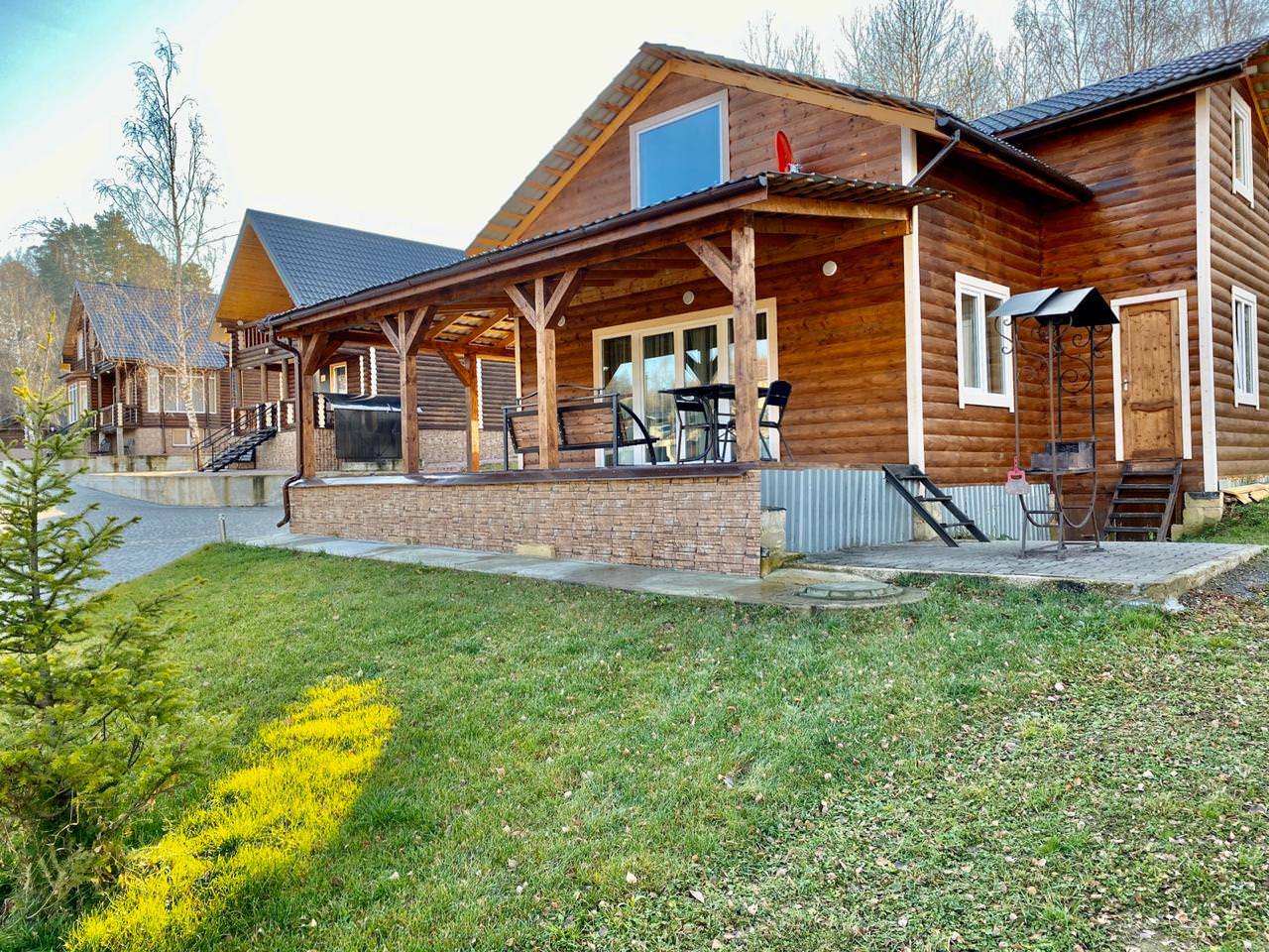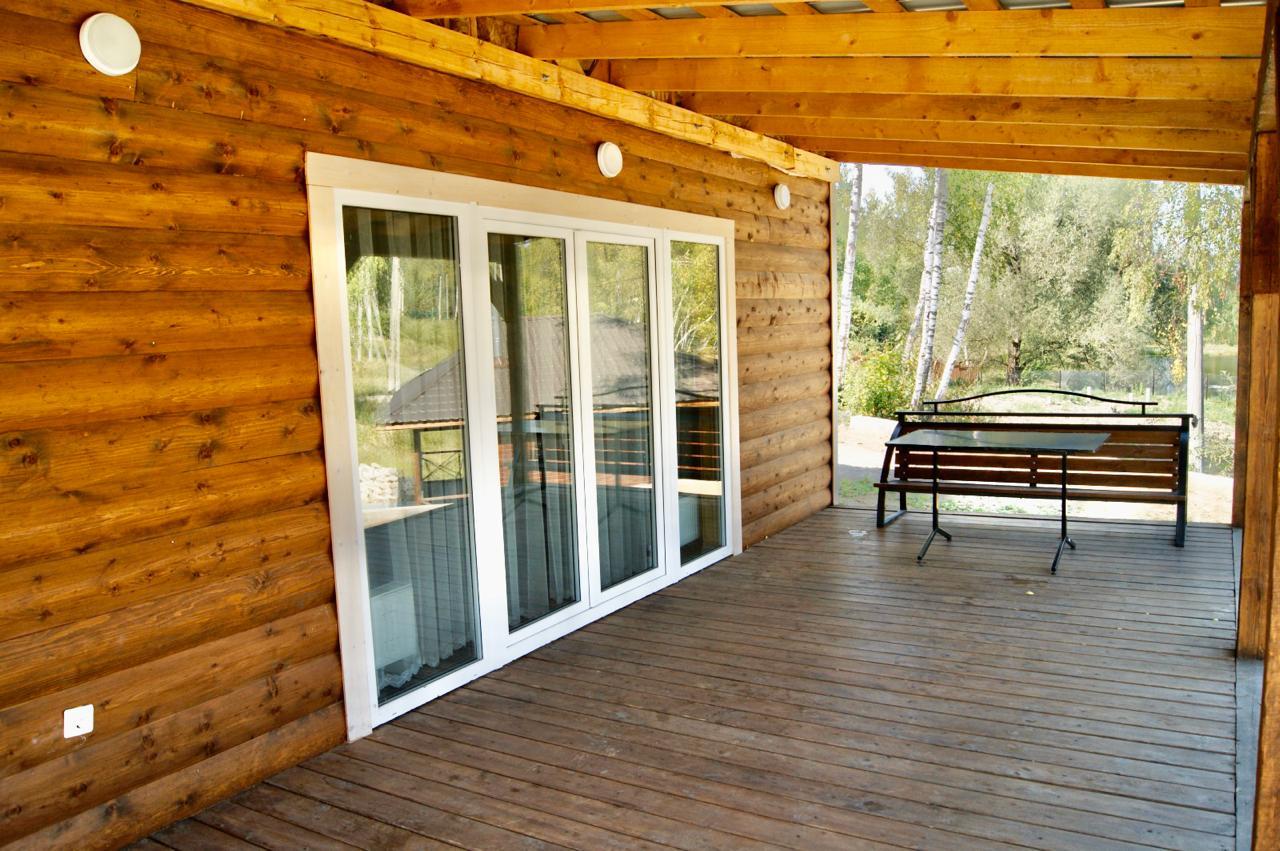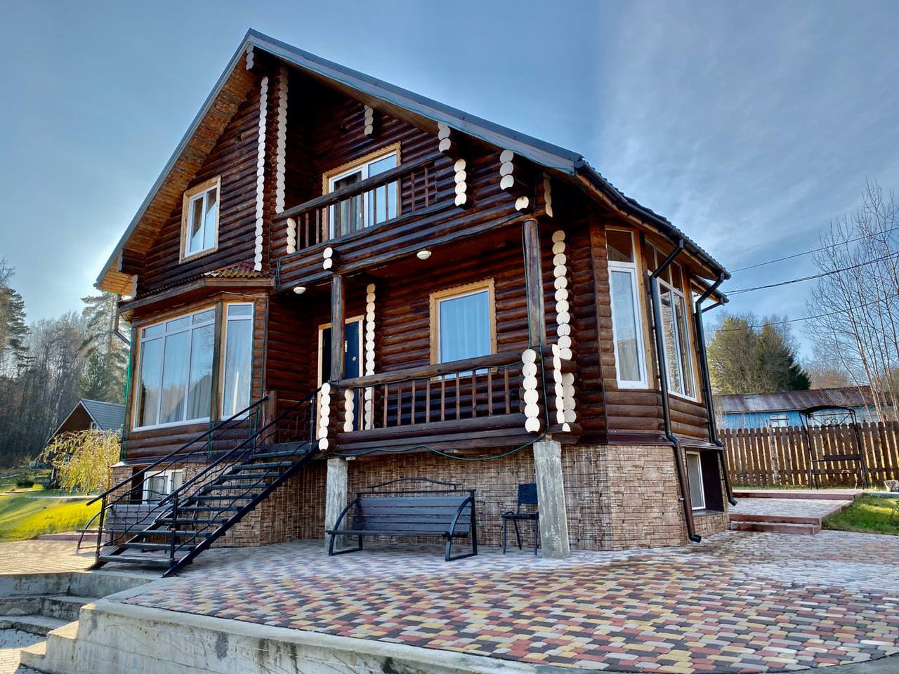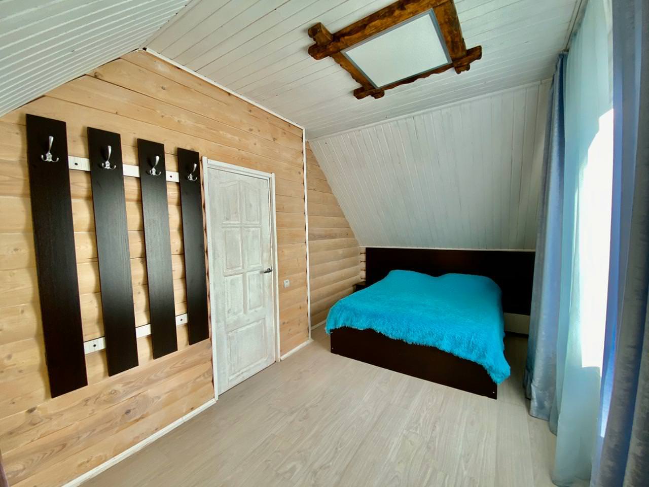 Отдельно стоящий сруб площадью 80 кв.м. На первом этаже: просторная гостиная с диваном и со спутниковым телевидением, санузел с душевой кабиной. На втором этаже: просторная комната с двуспальной кроватью, детская кровать, диван, санузел с душевой кабиной. Дополнительным: холодильник, СВЧ печь, электрический чайник, столовый набор на 6 персон, полотенце и вспомогательная посуда, комод, прикроватные тумбы, балкон. В доме может проживать 6 человек.