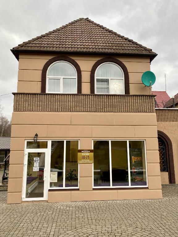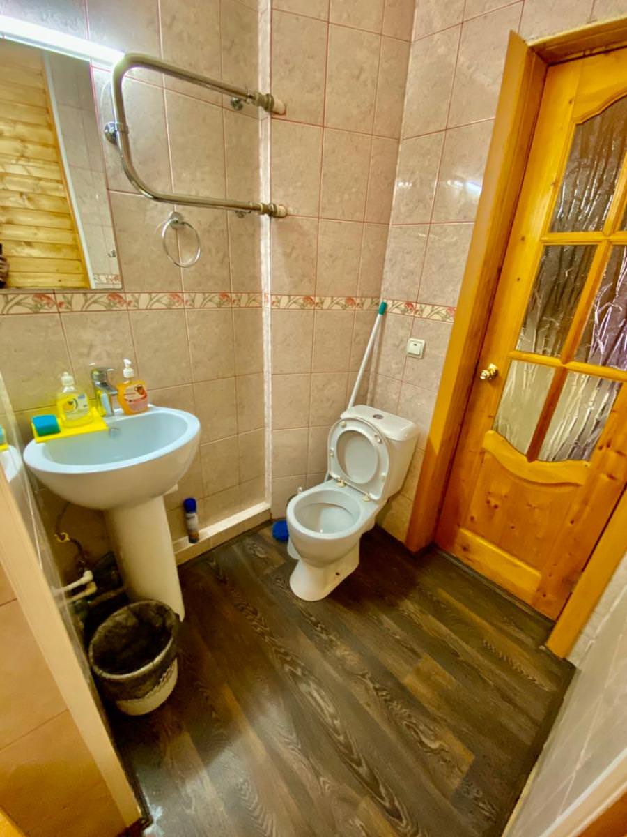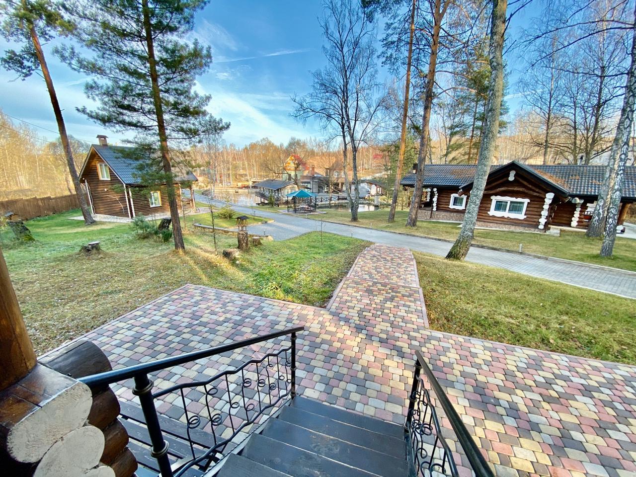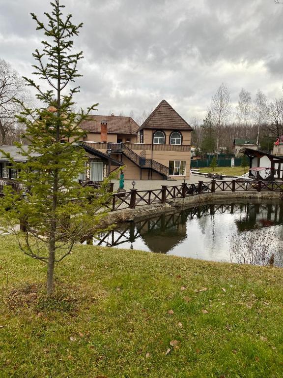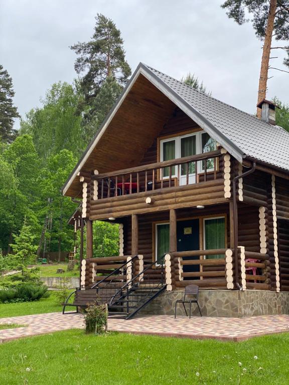 Отдельно стоящий сруб площадью 250 кв.м. На первом этаже: гостиная с диваном и со спутниковым телевидением, санузел с душевой кабиной, две комнаты, одна комната с двуспальной кроватью и детской кроватью, во второй комнате две односпальные кровати. На втором этаже: холл с диваном и со спутниковым телевидением, санузел с душевой кабиной, две комнаты с двуспальными кроватями, и одна комната с двумя односпальными кроватями. Дополнительным: холодильник, СВЧ печь, электрический чайник, столовый набор на 14 персон, полотенце и вспомогательная посуда, комод, прикроватные тумбы, балкон. В доме может проживать 14 человек.