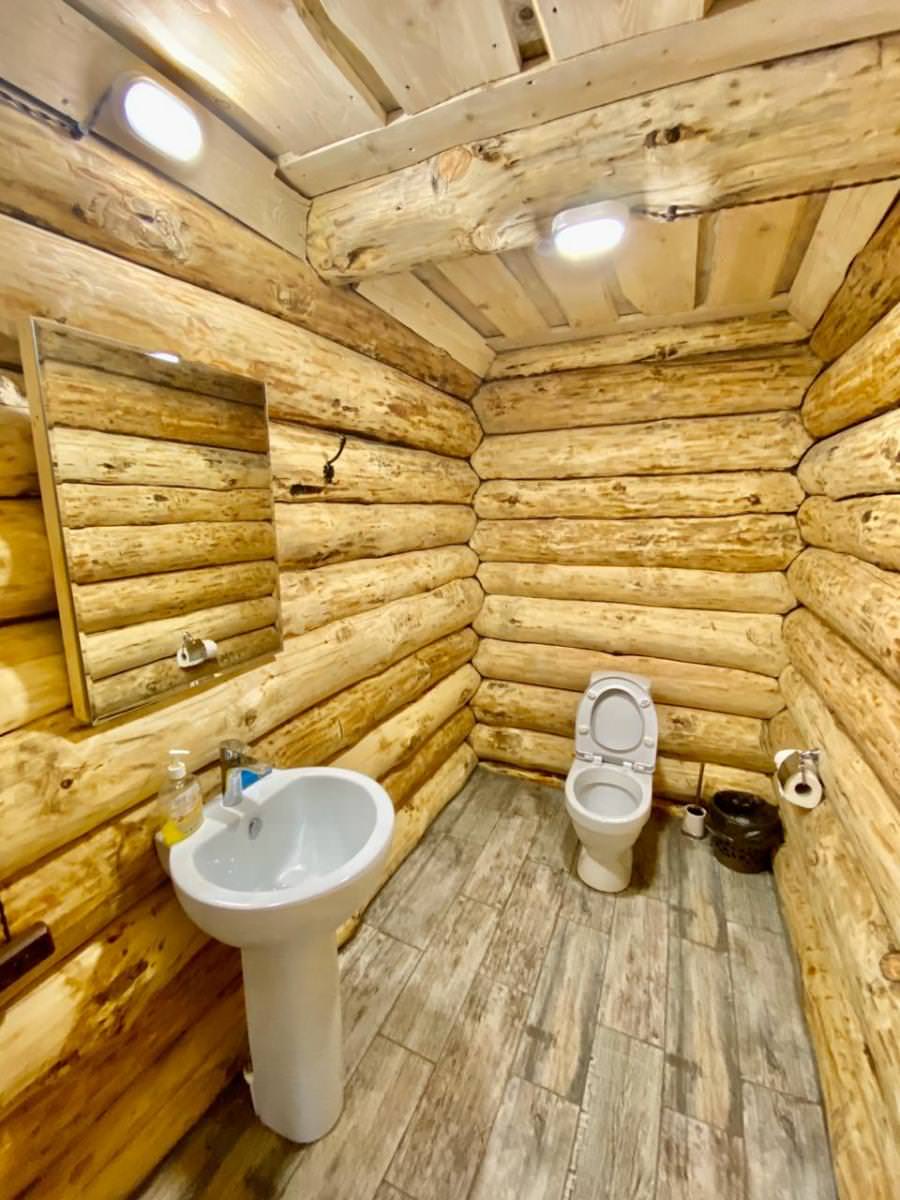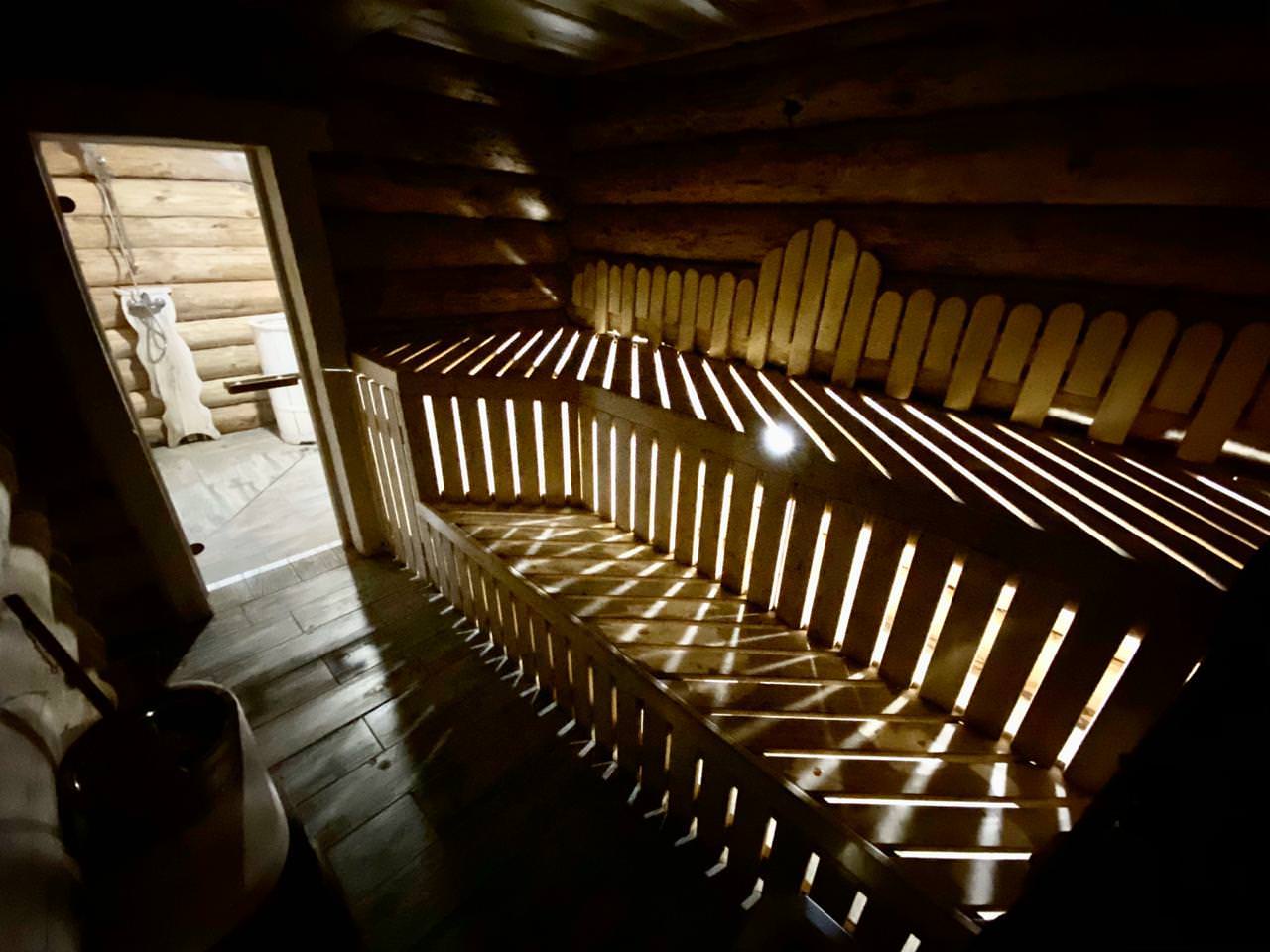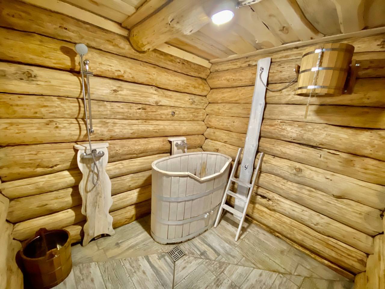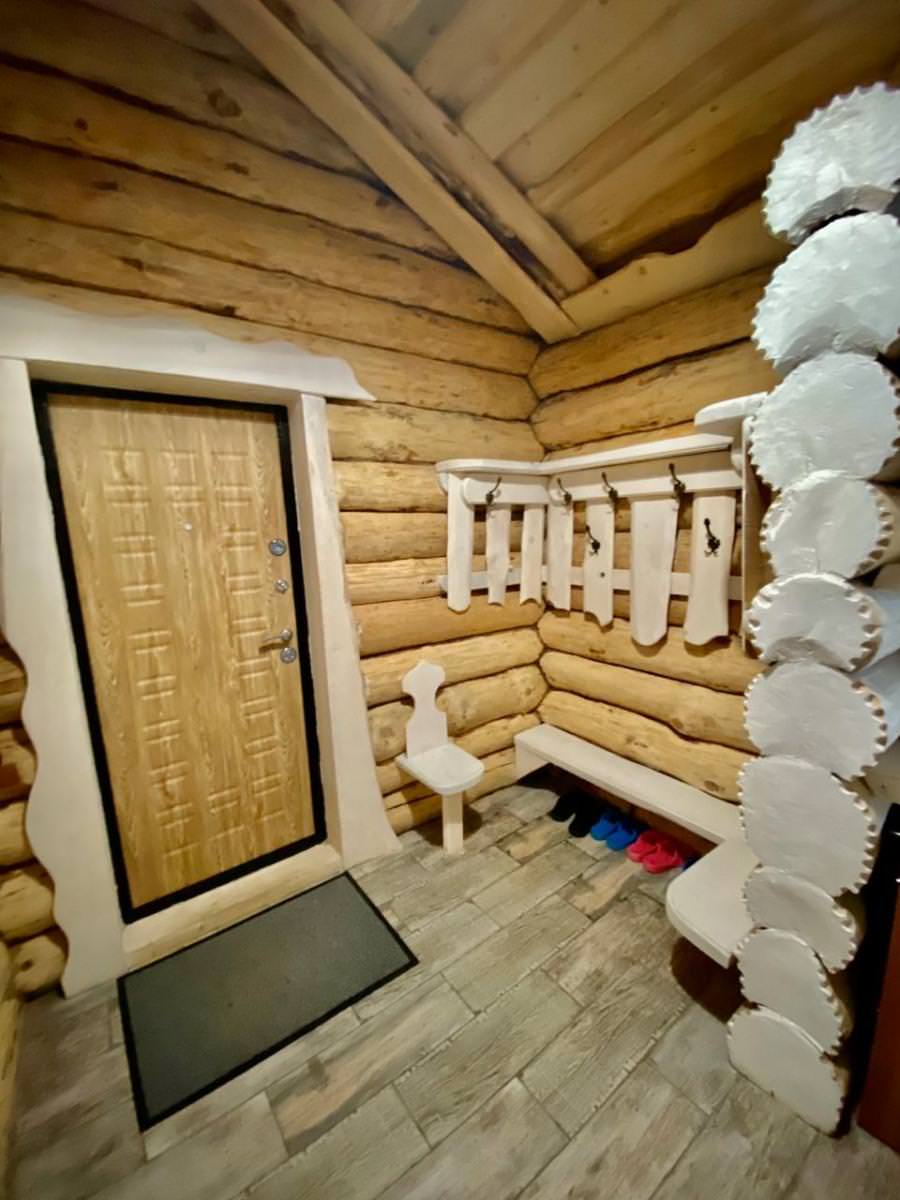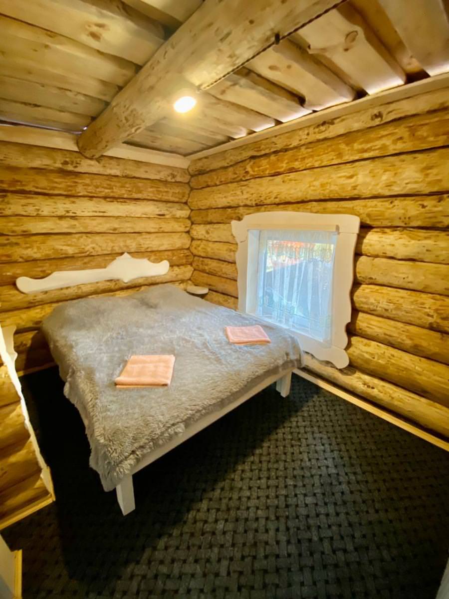 Просторная гостиная с диванами и со спутниковым телевидением, санузел, одна комната с двуспальной кроватью, парная, душевая комната с купелью. Дополнительным: холодильник, СВЧ печь, электрический чайник, столовый набор на 8 персон, полотенце и вспомогательная посуда, музыкальный центр.