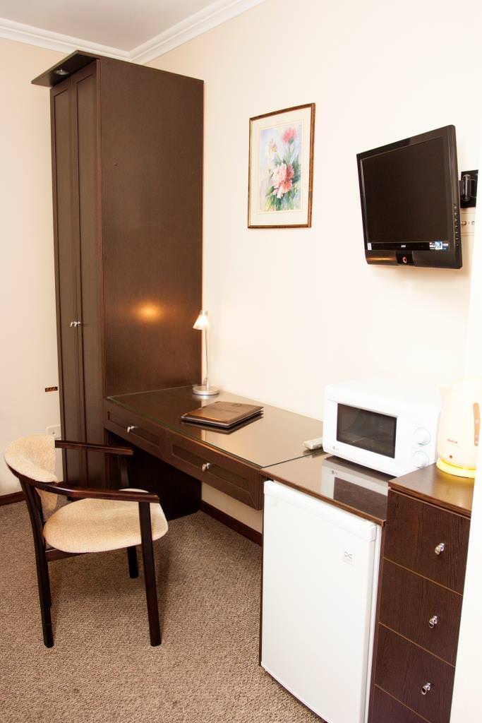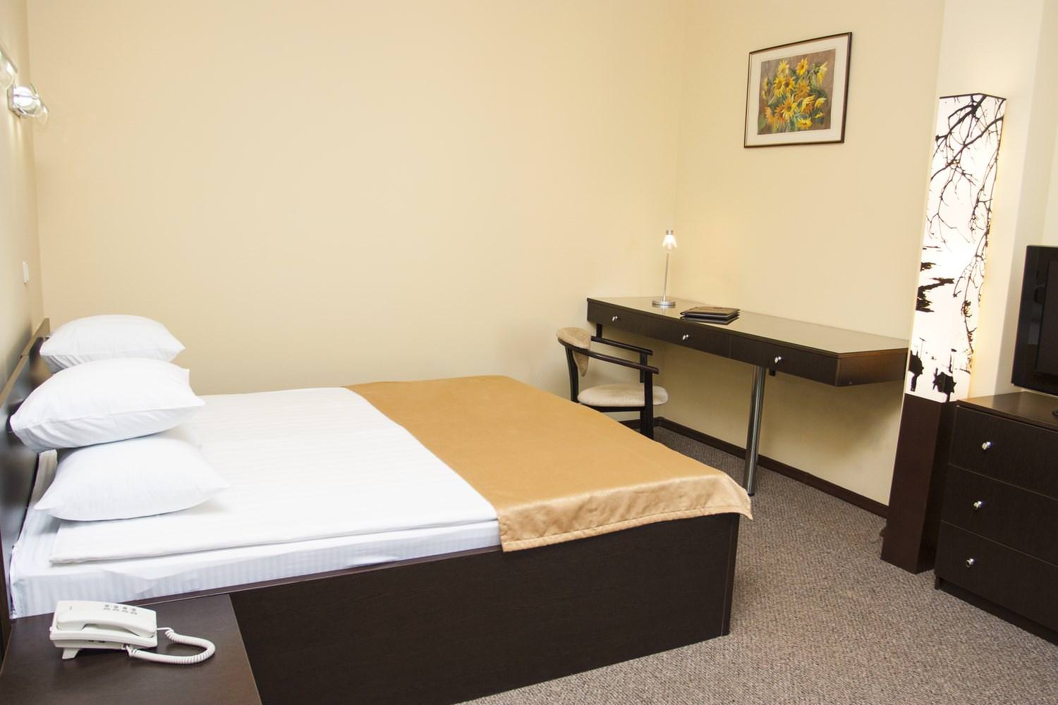 Компактный одноместный номер с возможностью двухместного размещения. Интерьер оформлен в классическом стиле. Номер оборудован электронной системой доступа, сейфом. Есть телефон, платяной шкаф, шкаф-купе для верхней одежды, рабочее место, телевизор, WiFi высокоскоростной беспроводной интернет, мини-холодильник, электрический чайник, набор необходимой посуды. Санузел: душевая кабина, фен, индивидуальный набор туалетных принадлежностей. Также в наличии махровый халат, тапочки.