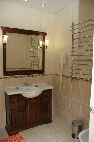 Просторный номер с большой нестандартной двуспальной кроватью (king size). Номер оборудован электронной системой доступа, сейфом. Удобная прихожая, платяной шкаф в спальне, рабочее место, телевизор, телефон, кабель доступа к интернету. В мини-кухне расположен холодильник, СВЧ, электрический чайник, набор необходимой посуды. Ванна необычных размеров приятно вас удивит. В наличии фен, индивидуальный набор туалетных принадлежностей, махровый халат, тапочки.