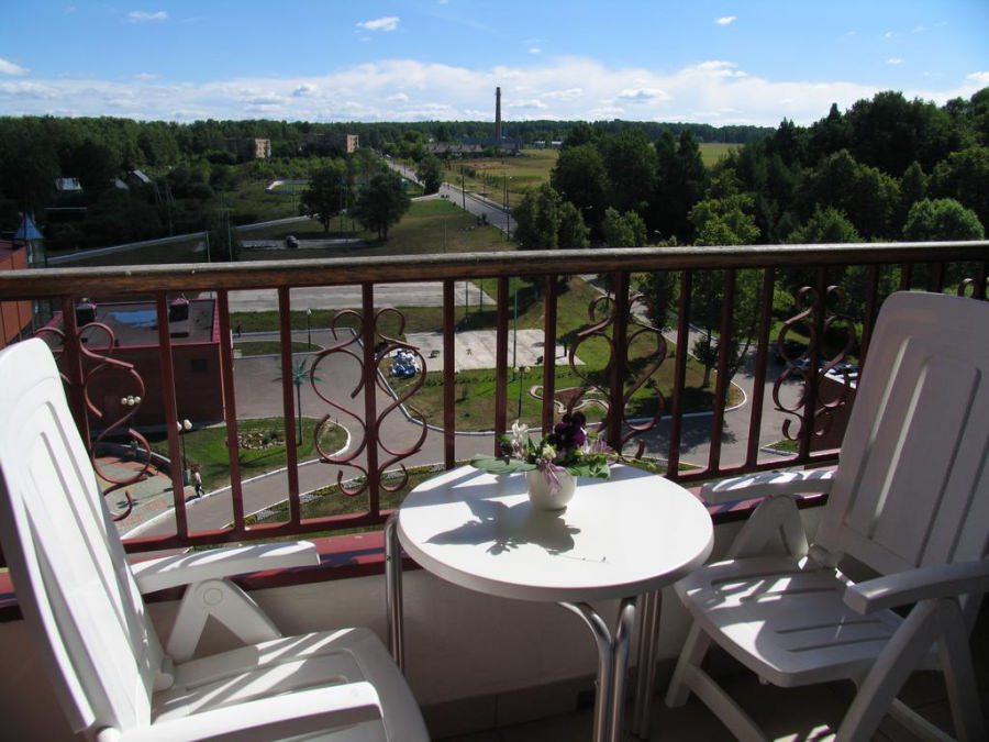 В номерах установлена отличная мебель и набор бытовой техники, а также есть выход на балкон.
