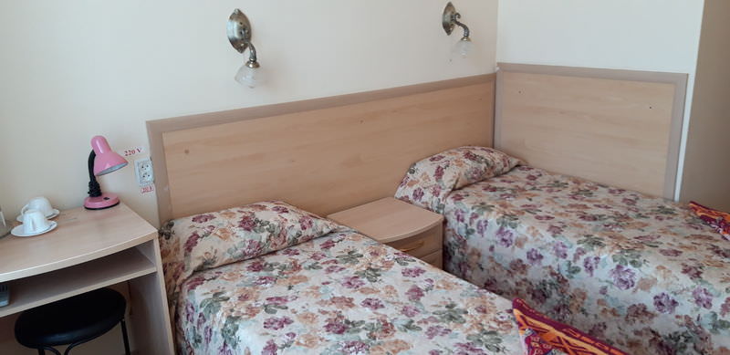 Площадь номера - 15 кв.м.; В номере: Телевизор, Балкон, Душ/душевая кабинка, Раздельные кровати, Туалет в номере, Тумбочка, Шкаф, Набор посуды; Макс. кол-во гостей - 2