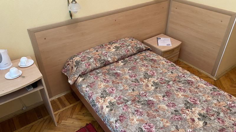 Площадь номера - 15 кв.м.; В номере: Телевизор, Душ/душевая кабинка, Туалет в номере, Односпальная кровать , Тумбочка, Чайник; Макс. кол-во гостей - 1