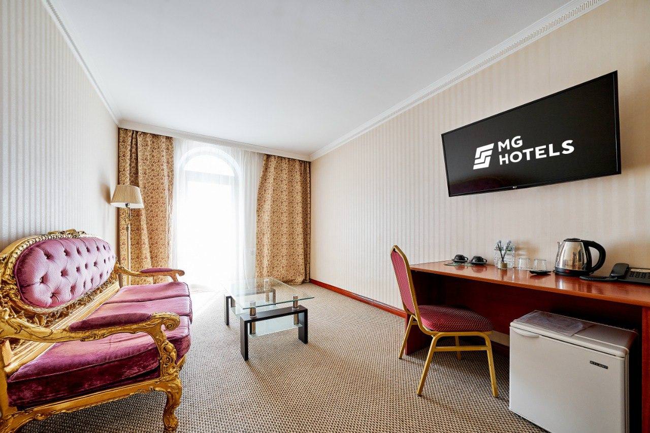 Номера оснащены всем необходимым для комфортного проживания Гостей. В каждой комнате имеется телефон, телевизор, холодильник, шкаф для одежды, ванная комната с ванной, набор полотенец и гигиенических принадлежностей, фен. В зависимости от типов комнат в различных номерах также есть рабочее место, зона отдыха, состоящая из журнального столика, дивана или кресла, кондиционер. На территории гостиницы действует Wi-Fi, для Гостей в течение дня открыт бесплатный тренажерный зал.