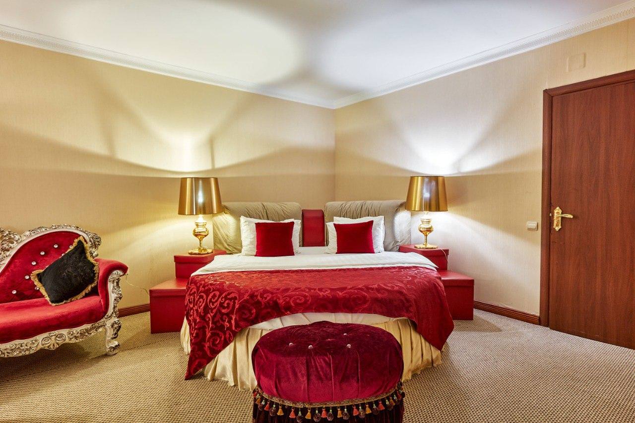 Шикарный номер категории «Люкс с сауной» - идеальное решение для всех, кто хочет насладиться настоящей финской сауной, не выходя из номера. Также вам доступны все преимущества номера люкс - уютная круглая кровать, кресла, журнальный стол, большой телевизор с плоским экраном и многое другое.