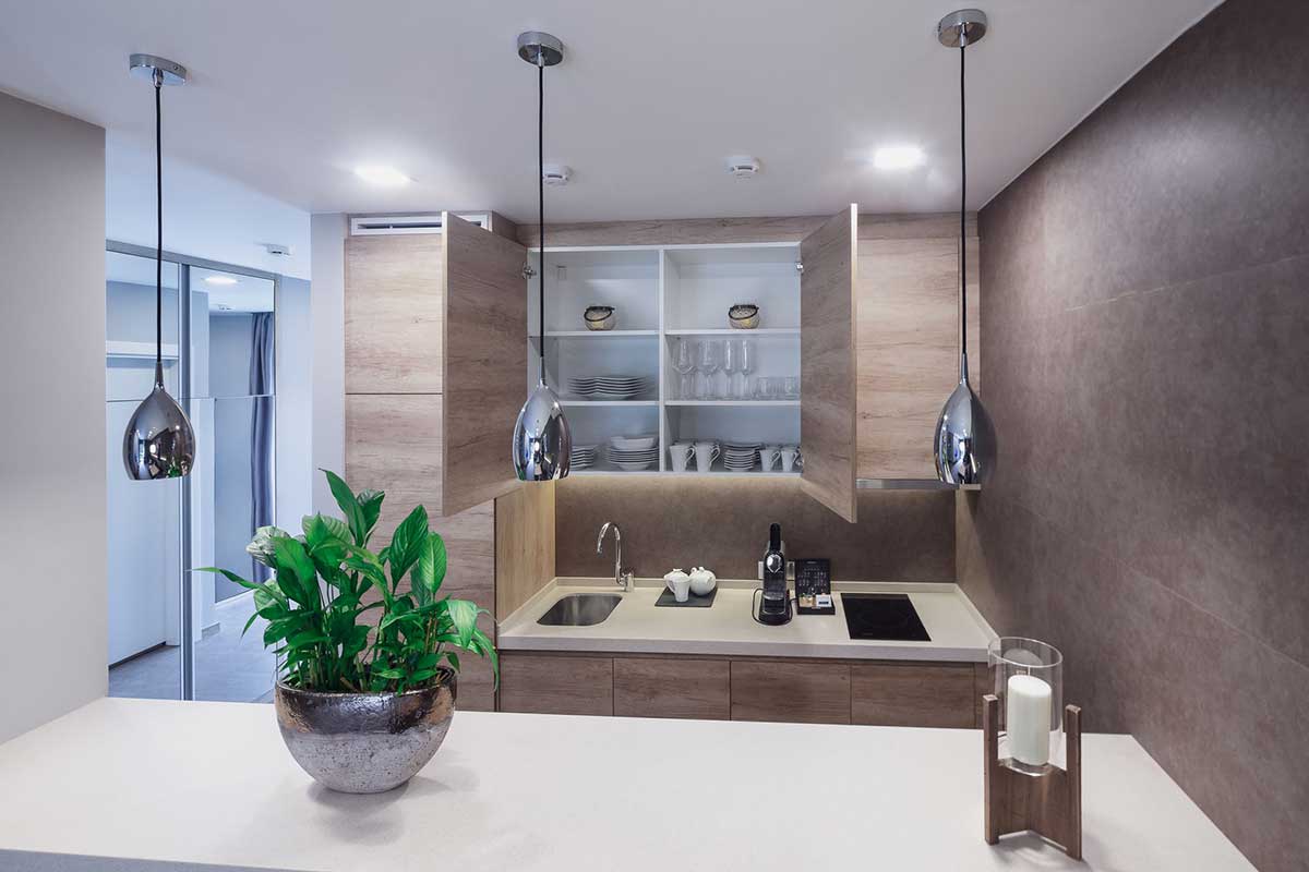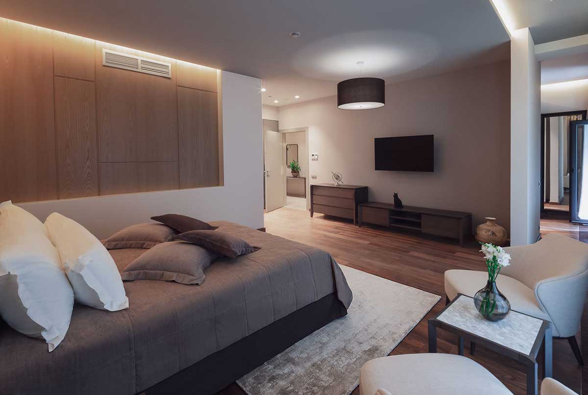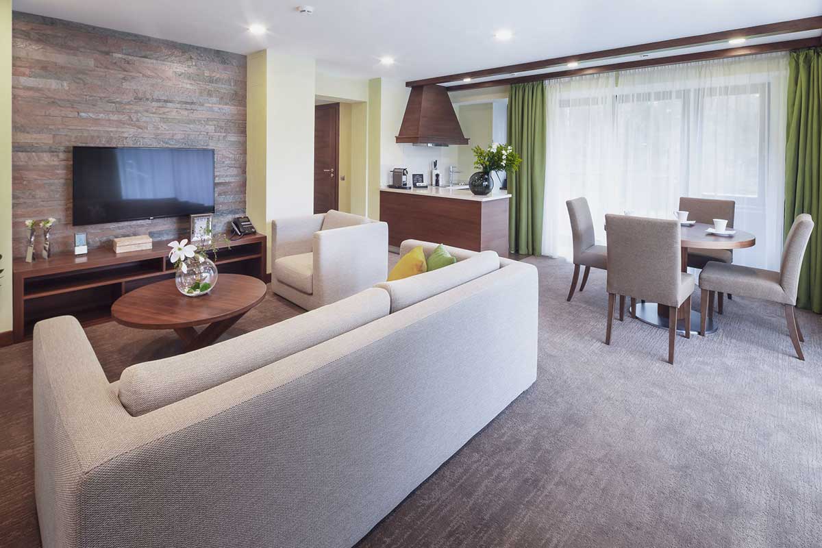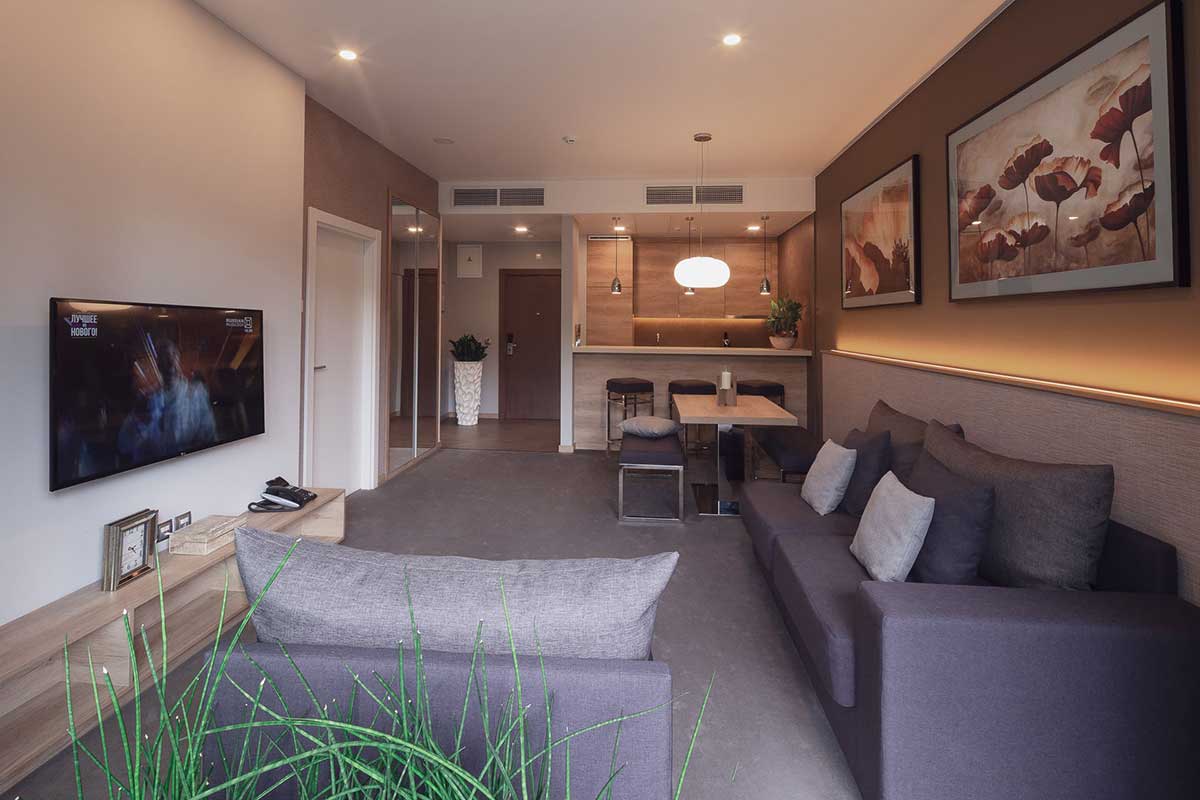 Номерной фонд предлагает гостям таунхаусы и апартаменты. Каждый номер — это простор и комфорт, экологичные материалы отделки, натуральные ткани, оригинальные дизайнерские решения по сочетанию оттенков и фактур.
