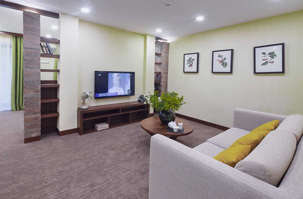 СПА-комплекс включает: косметологический кабинет, beauty-бутик, парикмахерский зал, ногтевой сервис, криосауну, стоматологический кабинет.