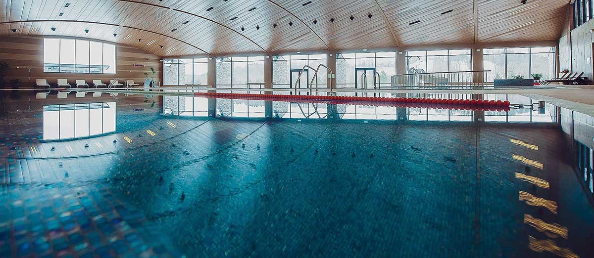 В первую очередь, это комплекс из 4 бассейнов: детский, гидромассажный, открытый бассейн с подогревом и закрытый, разделенный на 2 дорожки для спортивного и любительского плавания.