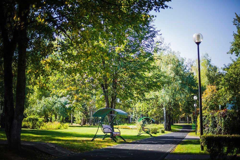 От жилых корпусов ведут живописные тропки, а сами строения расположены вблизи лесной зоны.