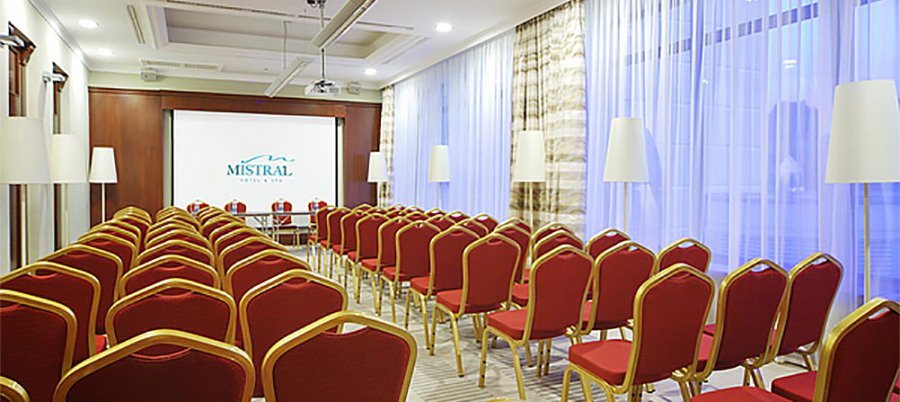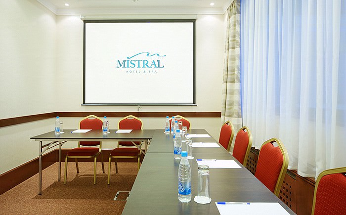 При необходимости организации и проведения деловой встречи или переговоров на территории отеля «Mistral Hotel & SPA», корпорантам будет предоставлен вместительный конференц-зал «Марк Шагал» или отличные переговорные комнаты, которых в отеле – четыре, и они носят названия «Моне», «Ренуар», «Дега» и «Ван Гог».
