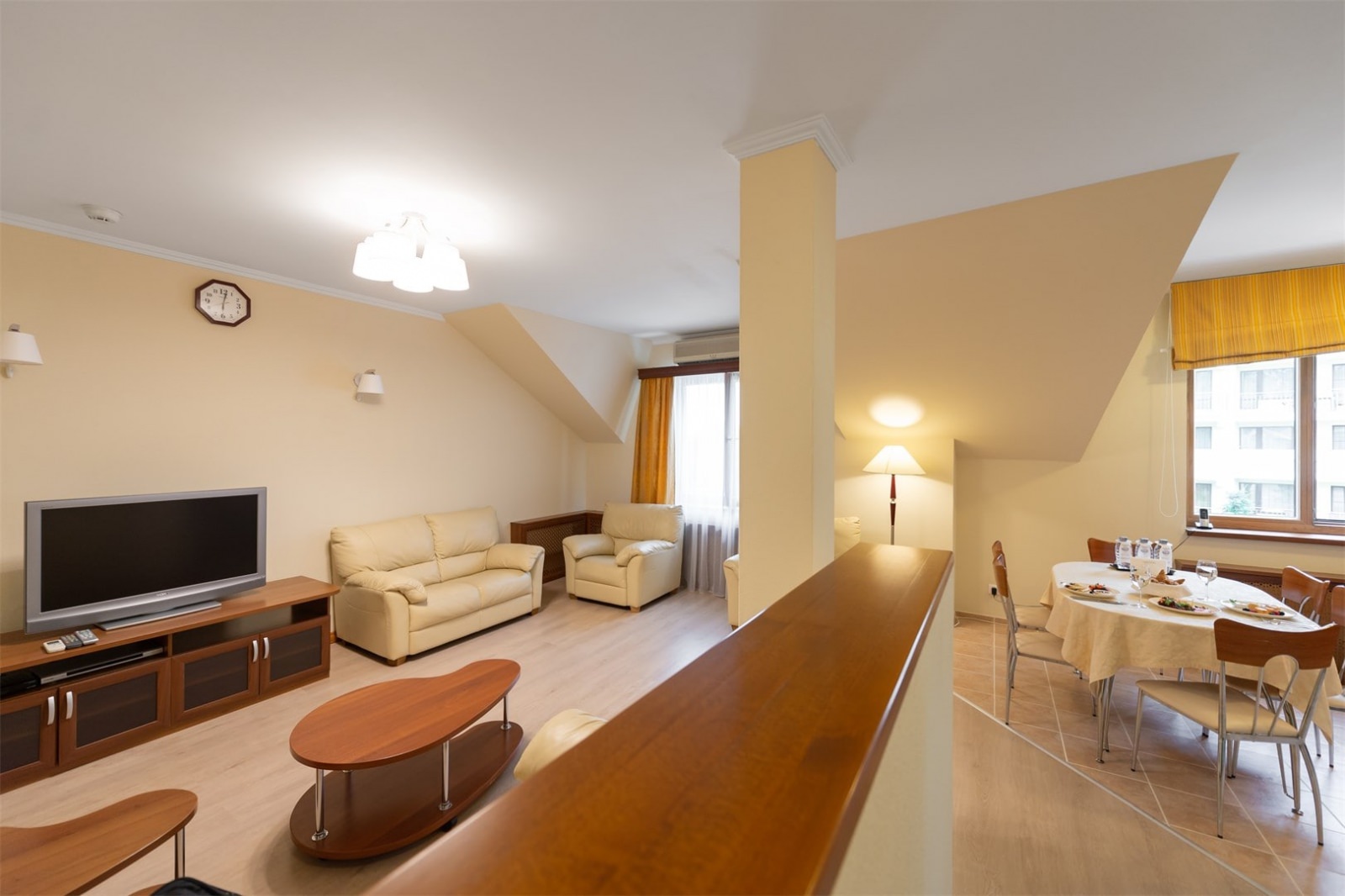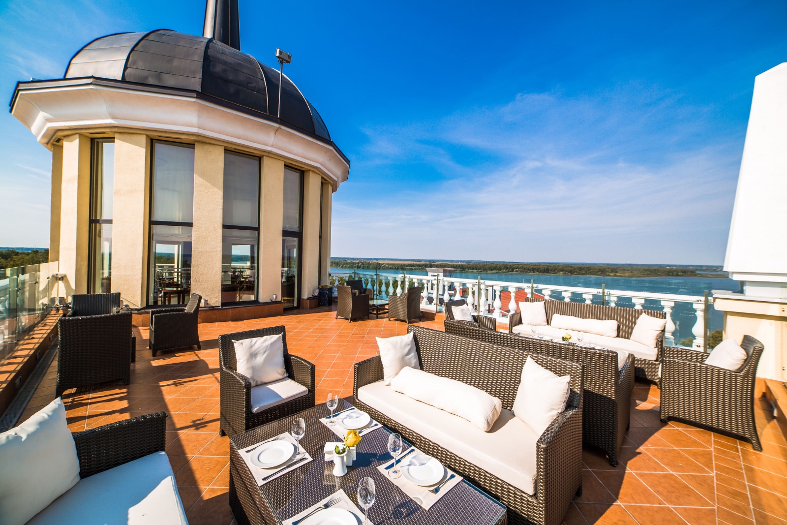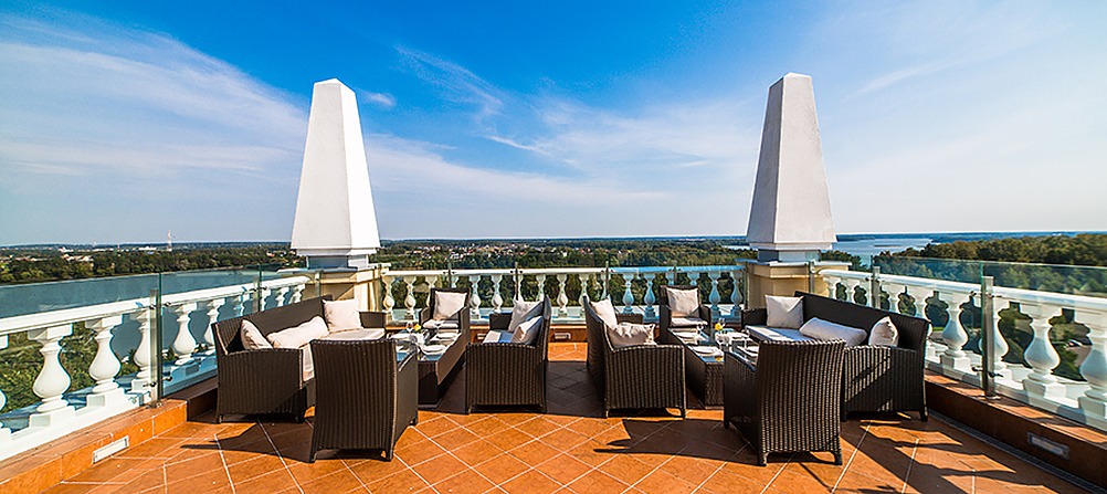 Роскошный дизайн, большие окна с видом на водохранилище, просторная открытая терраса – всё это включают в себя президентские апартаменты.