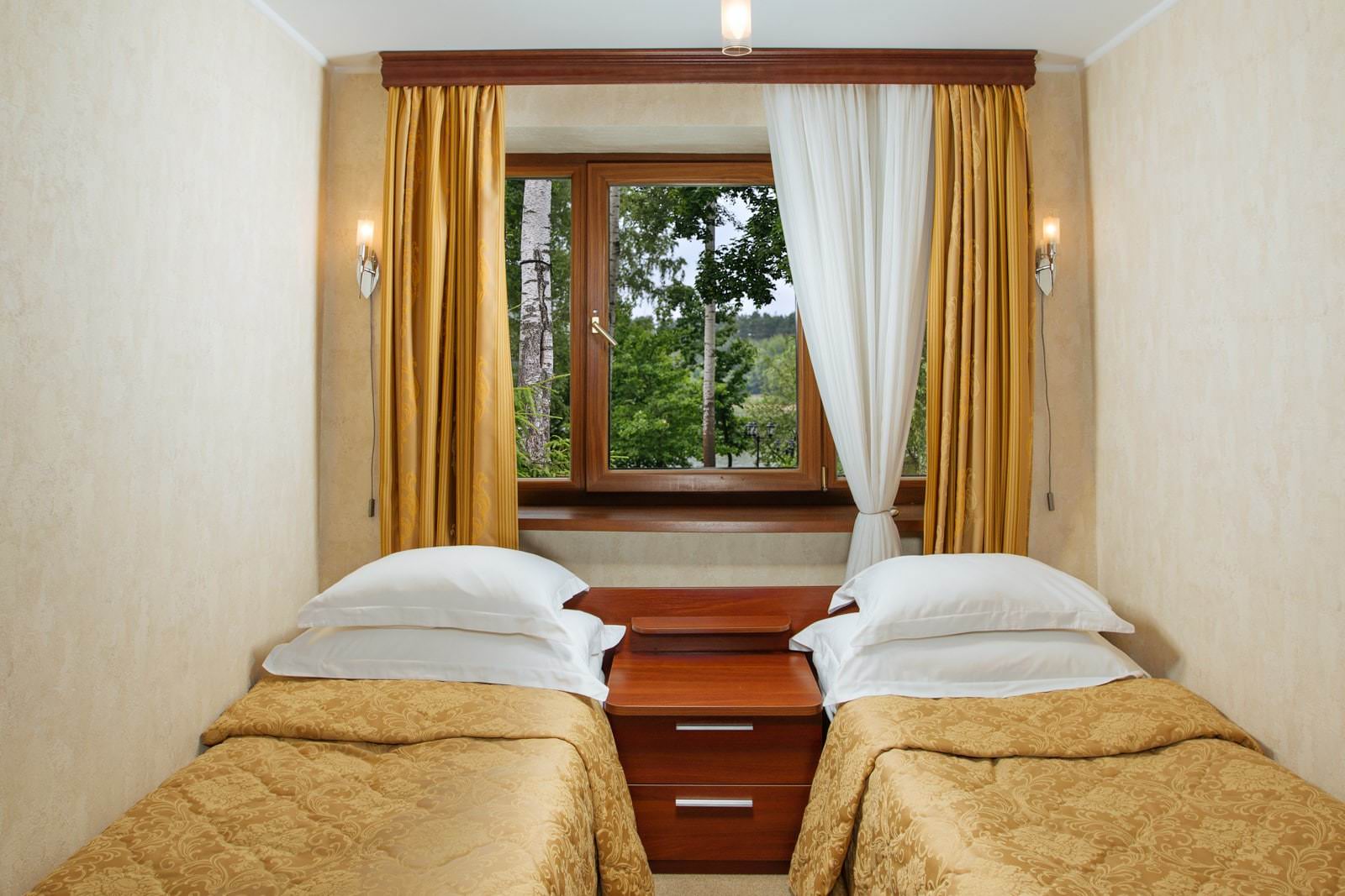 Окна таких номеров выходят на лес или во двор.