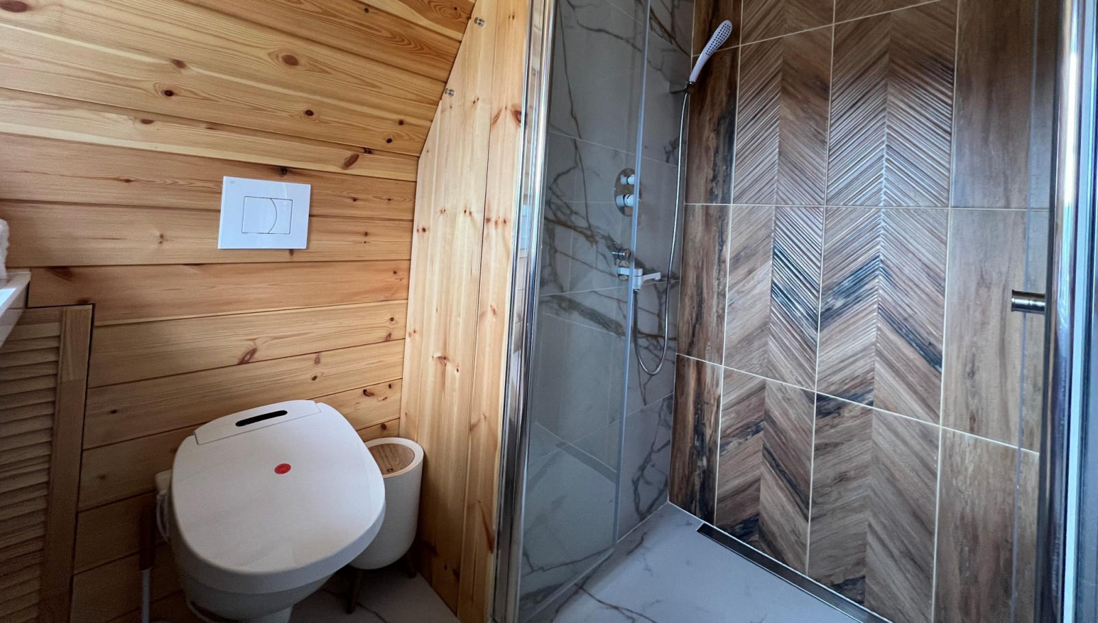 Треугольный дом А-Фрейм - дом "Путешественника". Великолепно для пары или для семьи, вместимость до 4 взрослых. Завораживающий вид на лес с кровати второго этажа через панорамное окно. Есть кухня со всей необходимой техникой и посудой. Большой угловой диван на первом этаже и двуспальная кровать на втором. Детская кроватка по запросу. Терраса на открытом воздухе, сетка-гамак.
