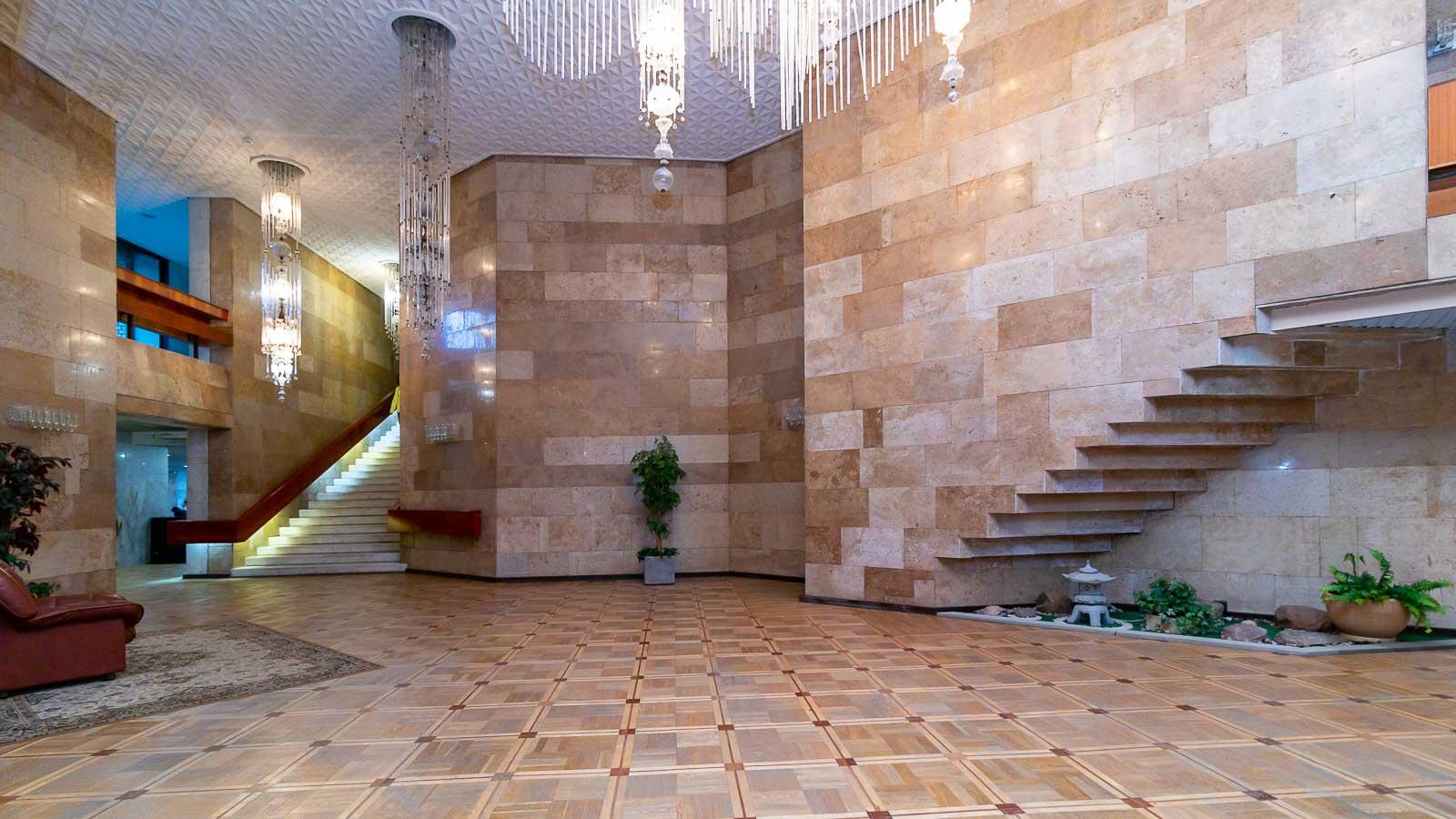 Таких помещения в санатории два – вместительный кинозал и рассчитанный на мероприятия среднего масштаба конференц-зал. Дизайн и оснащение залов приятно порадует участников.