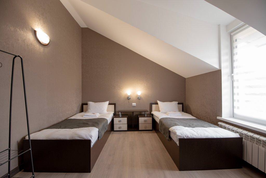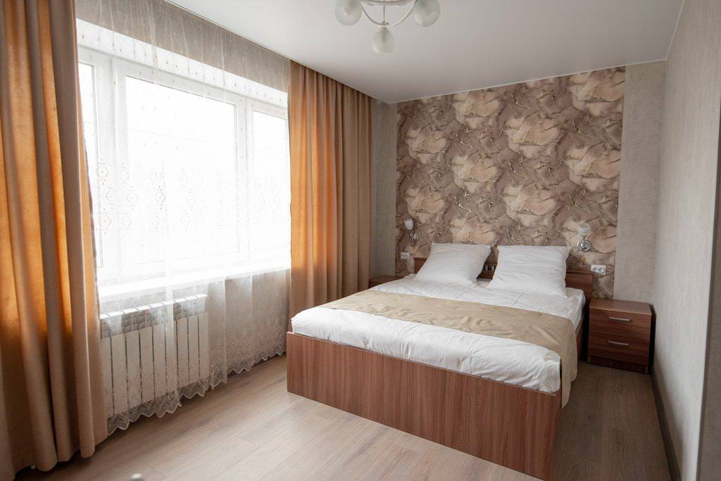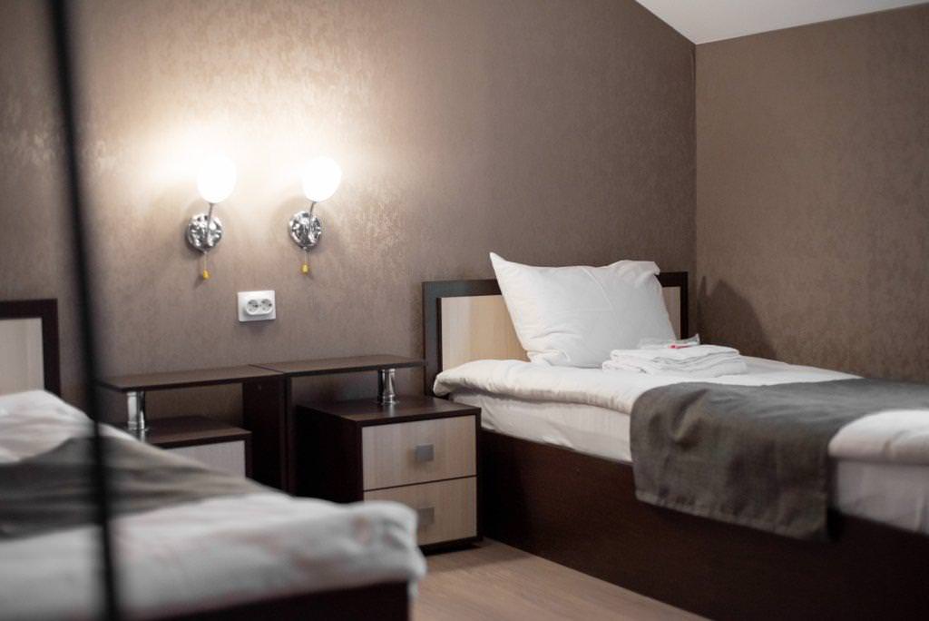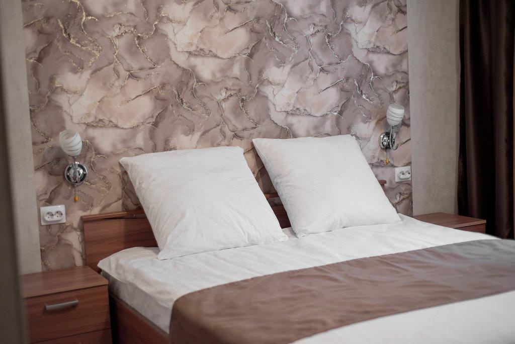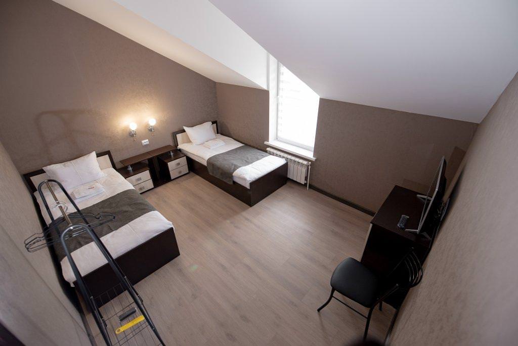 Однокомнатный двухместный номер стандарт с удобствами в номере. В номере представлены: 1 двухспальная кровать, телевизор с плоским экраном, прикроватные тумбочки.