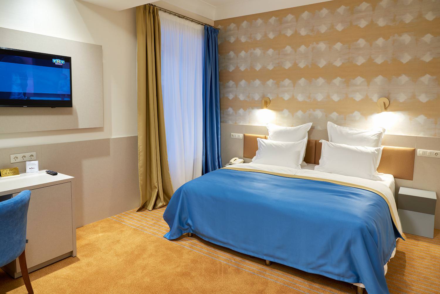 Площадь номера - 30 кв.м.; В номере: Сейф, Телевизор, Кабельное/спутниковое/цифровое телевидение, Тапочки, Услуга будильник, Фен, Набор косметики (туалетные принадлежности), Набор для приготовления чая/кофе, Ежедневная уборка, Рабочая зона, Душ/душевая кабинка, Двуспальная кровать, Туалет в номере, Тумбочка, Шкаф, Чайник, Утюг, Гладильная доска, Кресло; Макс. кол-во гостей - 2