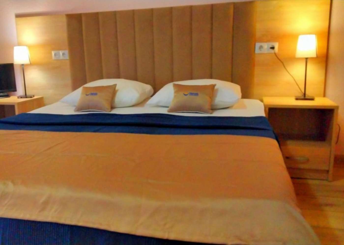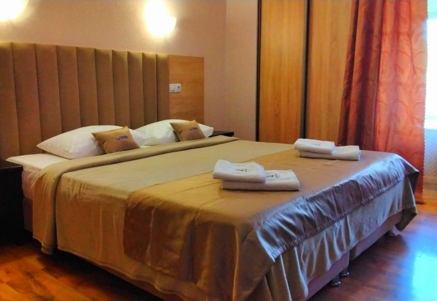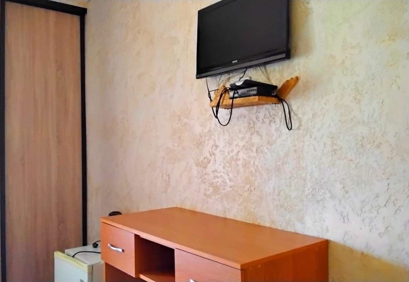 2 осн. места. Мебель: вешалка, зеркало, кровать двуспальная, прикроватные тумбочки, стол, стул, шкаф. Оборудование: телевизор, холодильник, чайный набор посуды, электрочайник. Санузел: с душем, фен. Сервис: Wi-Fi бесплатно, смена полотенец, смена постельного белья, уборка номера.