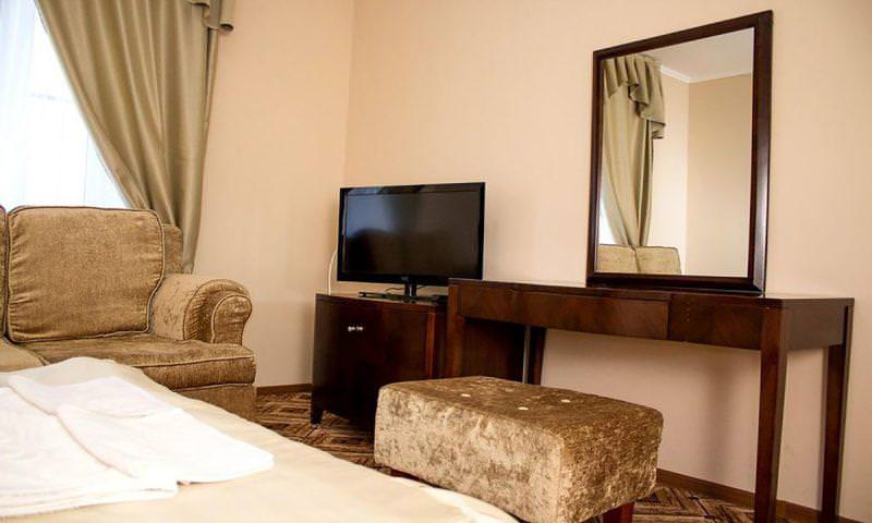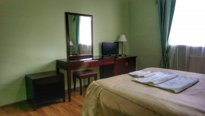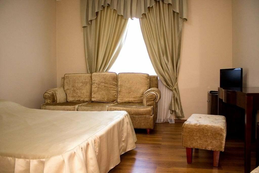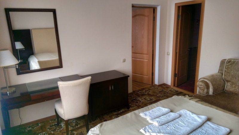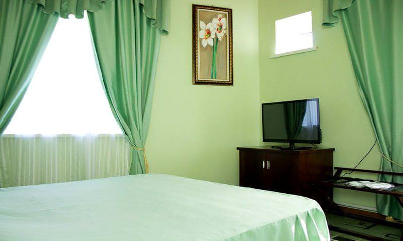 Двухместный номер комфорт общей площадью 25 кв.м. для размещения от 1 до 2х гостей. В номере: двухспальная кровать, диван, телевизор, вентилятор,мини-холодильник, туалетный столик, собственная ванная комната, туалетно-косметические принадлежности.